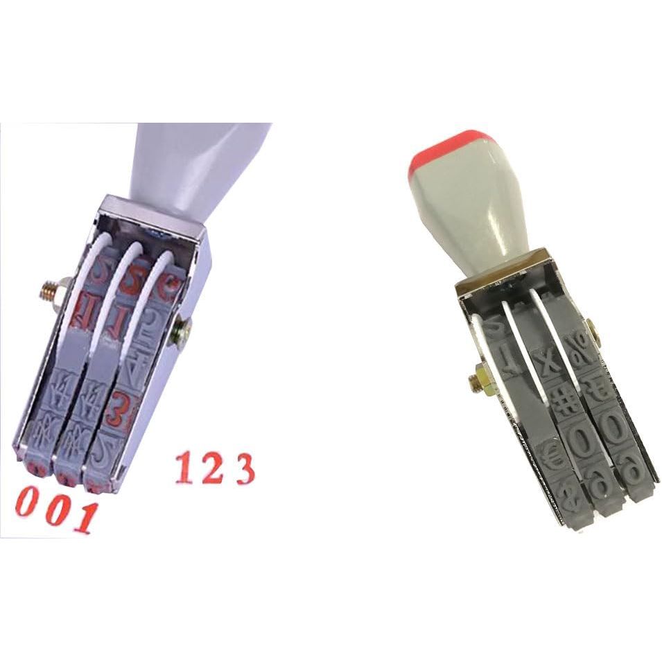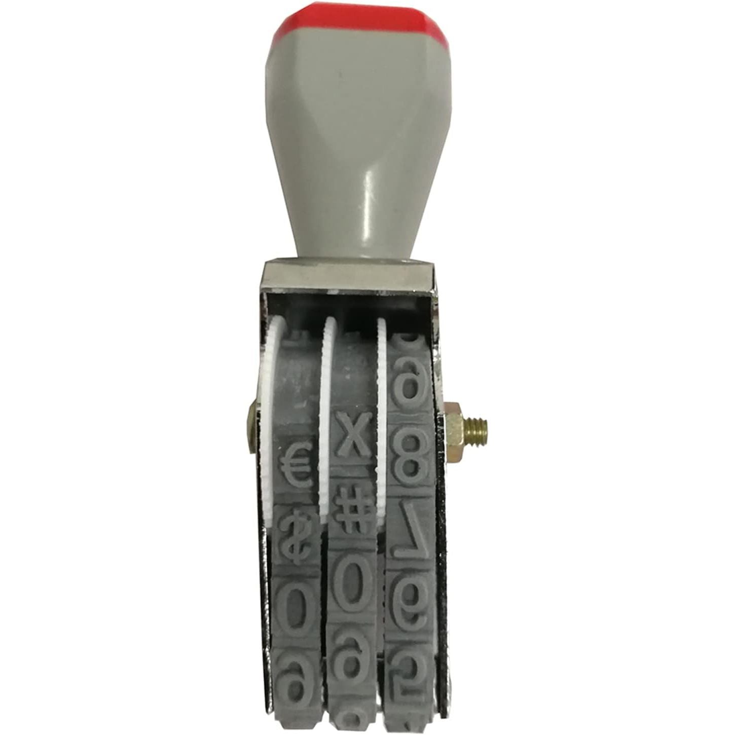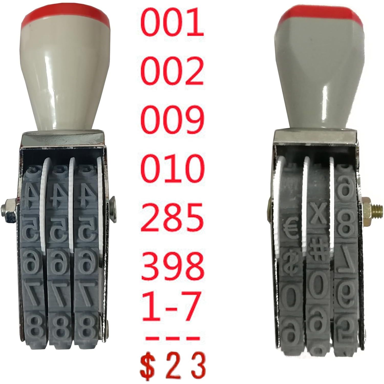 - WANLIAN 3-Digit Adjustable Rubber Number Stamp - Customizable 0-9 Numbers & Symbols for Packaging, Office, Labels (18x7mm Imprint, Gray-Red)