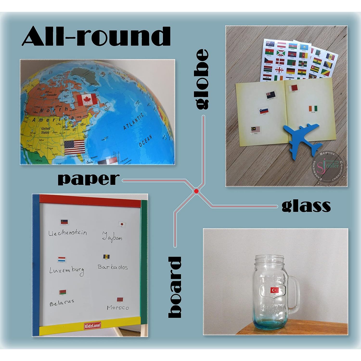 - AND BEYOND! Our World Country Stickers Can Be Used For World Map Favors, Suitcase Stickers, Country Flags Flash Cards, Fifa World Cup Sticker Book, Diversity Stickers, Olympics Themed Stickers, Or A Drink Around The World Passport.
