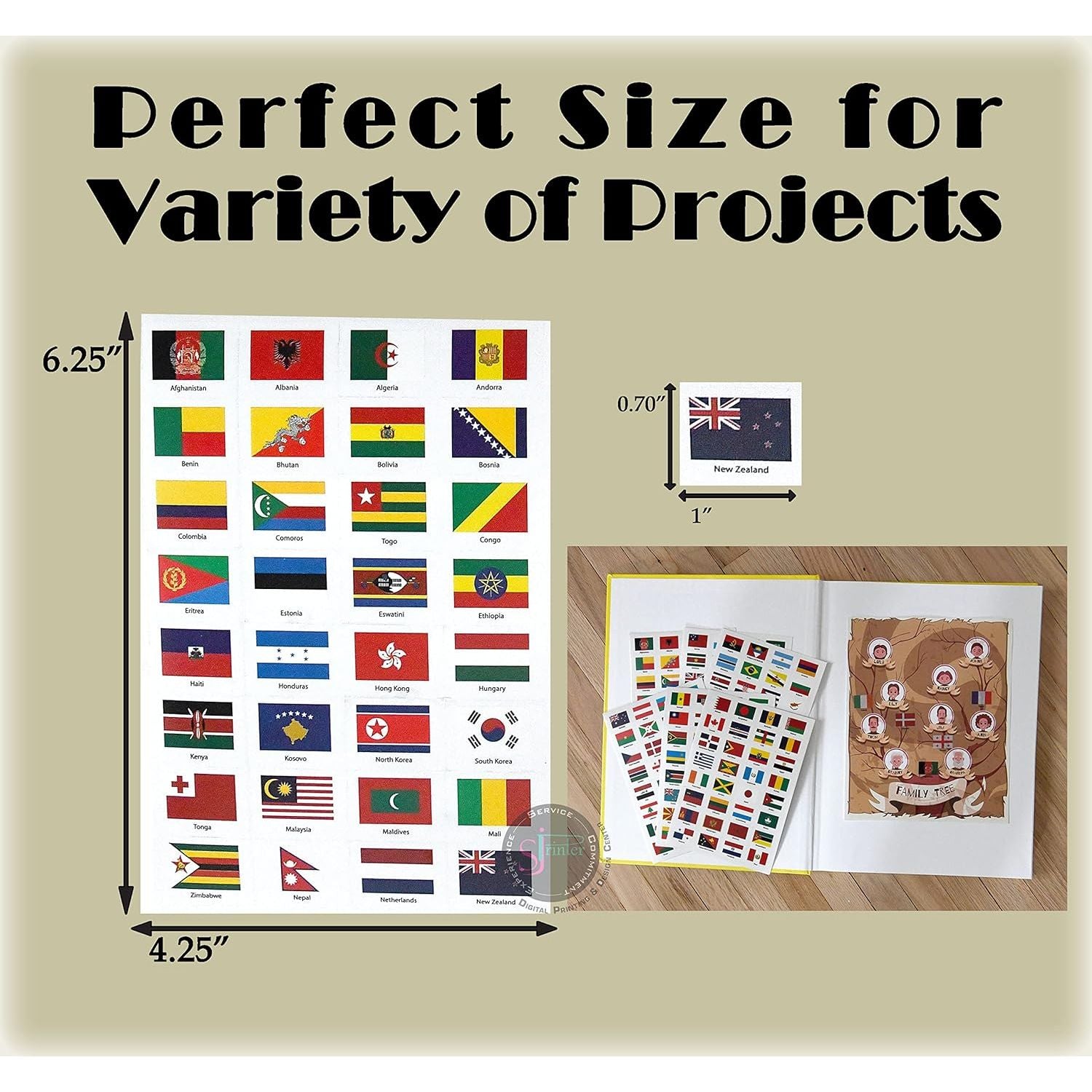 - 192 Countries Flags Stickers (One Flag For Each Country) - Each Flag Is 1" X 0.6" And Each Sticker Sheet Is 4"x 6". Country Stickers Are High Quality Transparent Pvc.