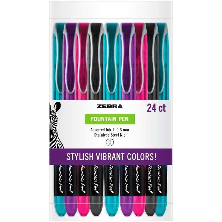 - Zebra Pen Fountain Pen Set, Fine Point 0.6mm, Black Non-Toxic Ink, Stainless Steel Nib, Disposable, 2-Pack (48312)