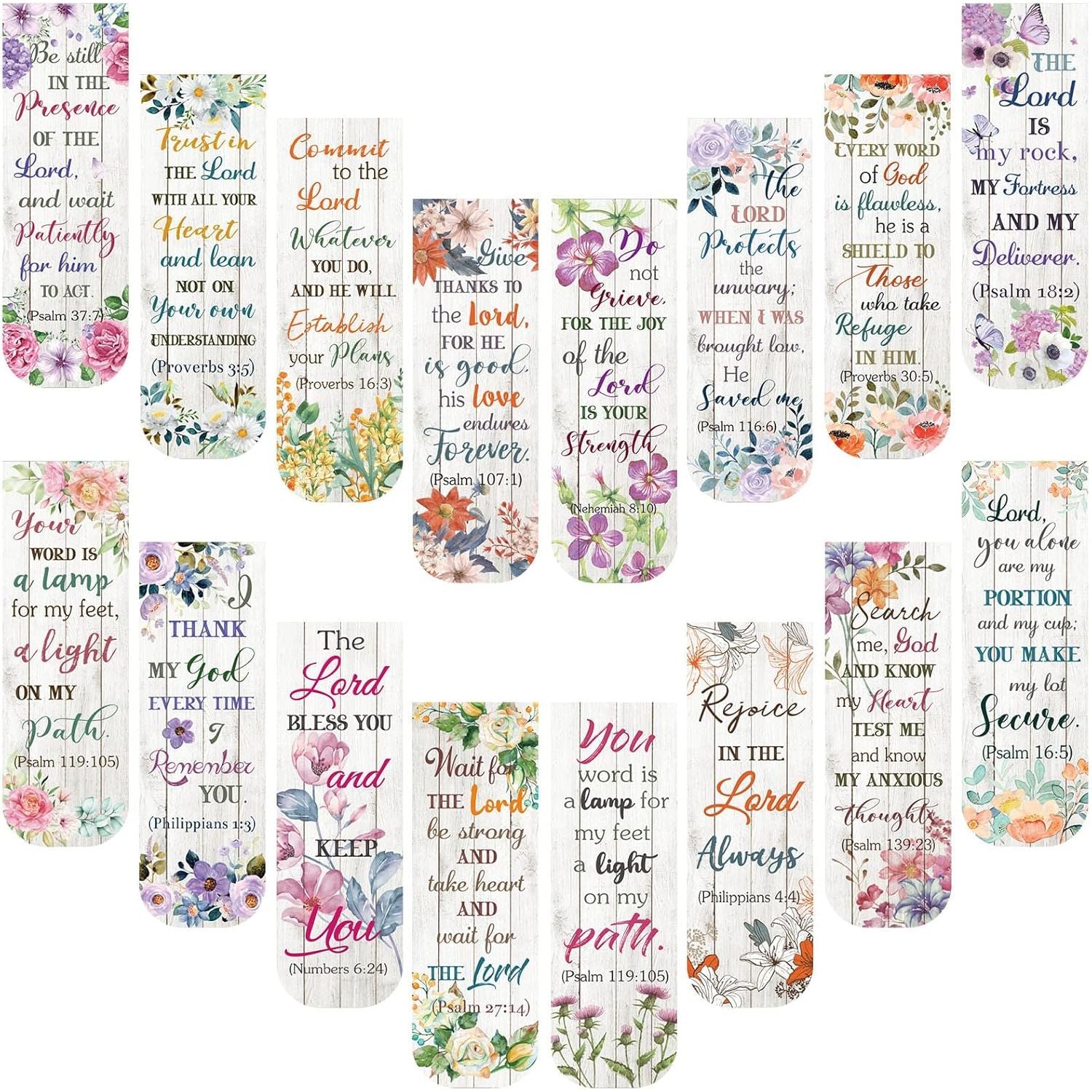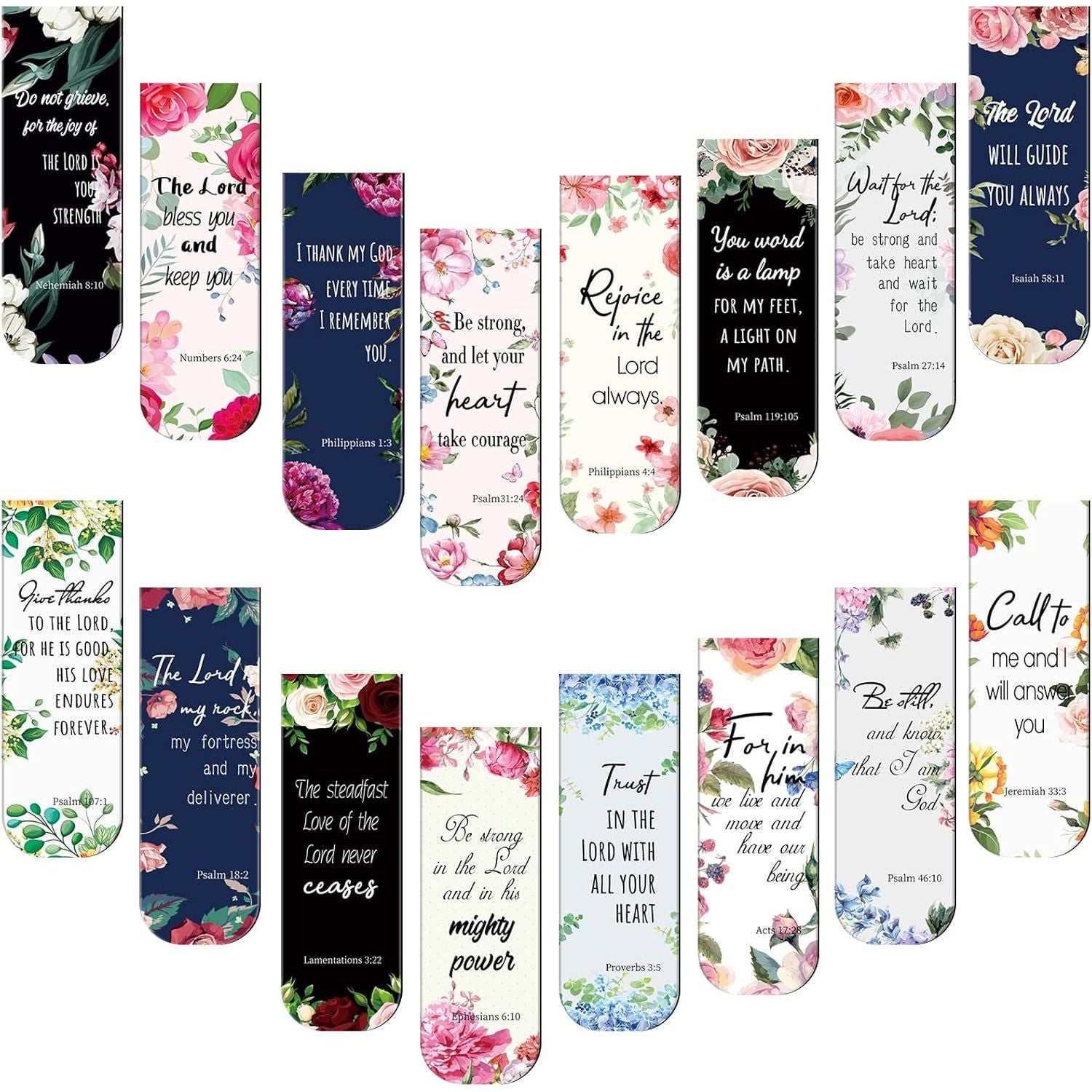 - Motivational Design: 48 pieces bible bookmarks are offered to you, 16 different styles in total, each christian magnet page marker is decorated with flowers pattern, come with inspirational words, bright colors make them cute and beautiful, improve your interests in reading, bring you in a good mood and feel energetic