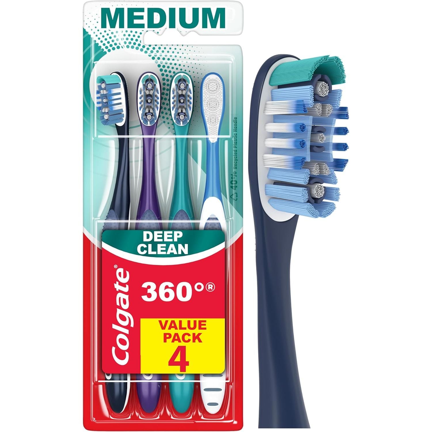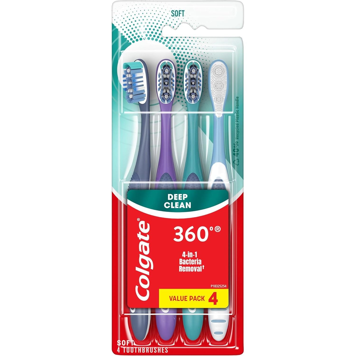 - Includes four (4) Colgate 360 Whole Mouth Clean Soft Toothbrushes, Bulk Toothbrush Pack