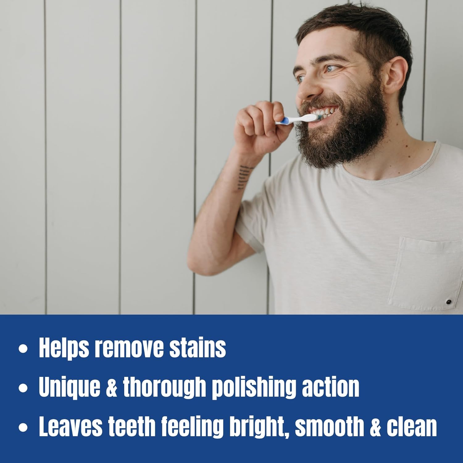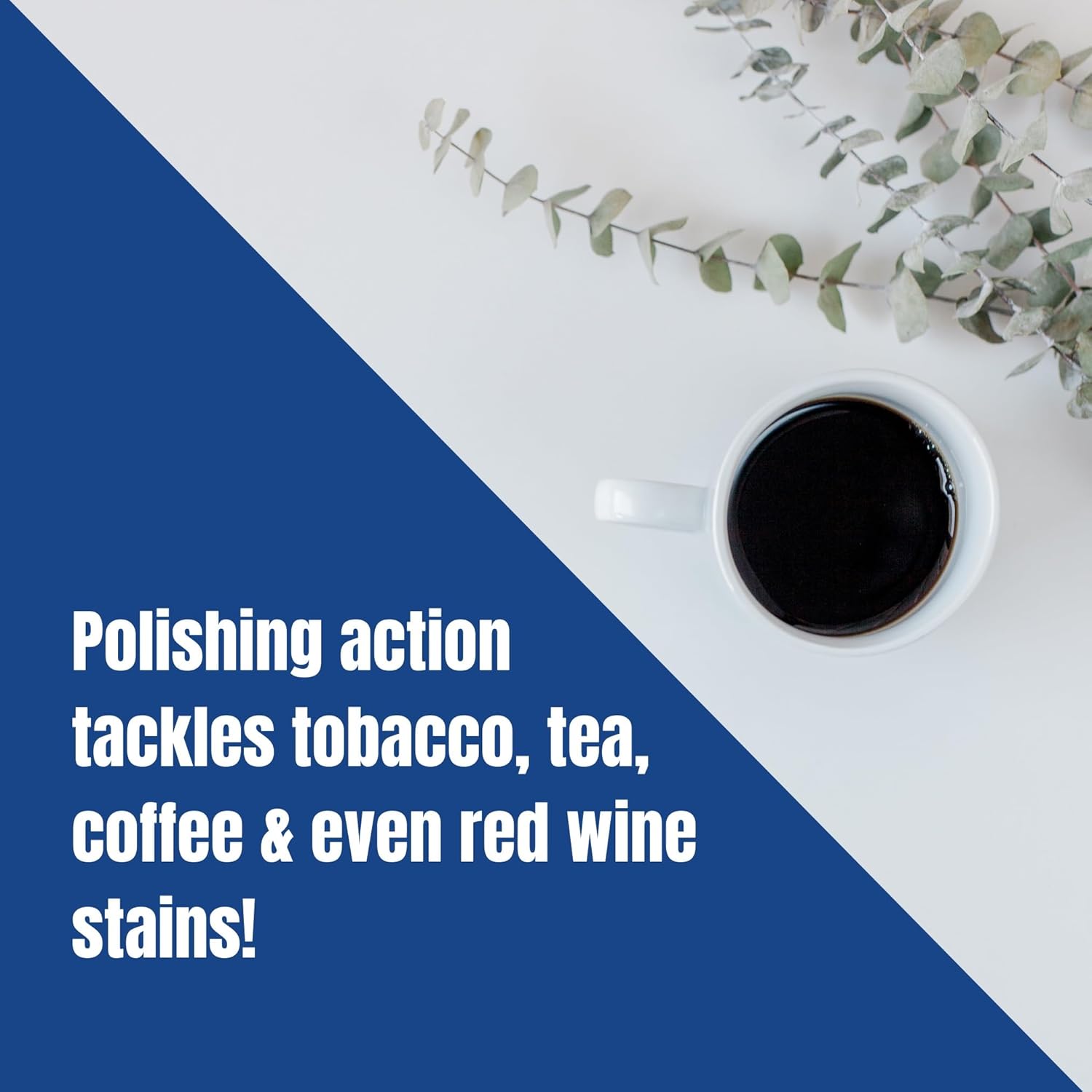 - Its distinct polishing action tackles tobacco, tea, coffee and even red wine stains head on and leaves teeth looking clean, smooth and bright