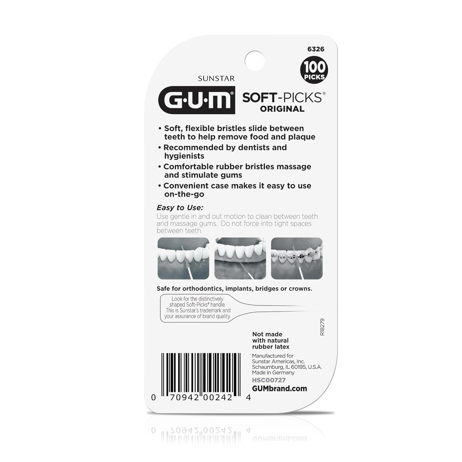 - EASY & EFFECTIVE : Give yourself something to smile about with GUM Soft Picks Original. Our disposable tooth picks have soft bristles that slide easily between teeth to remove plaque and food for healthier gums, cleaner teeth, and fresher breath.
