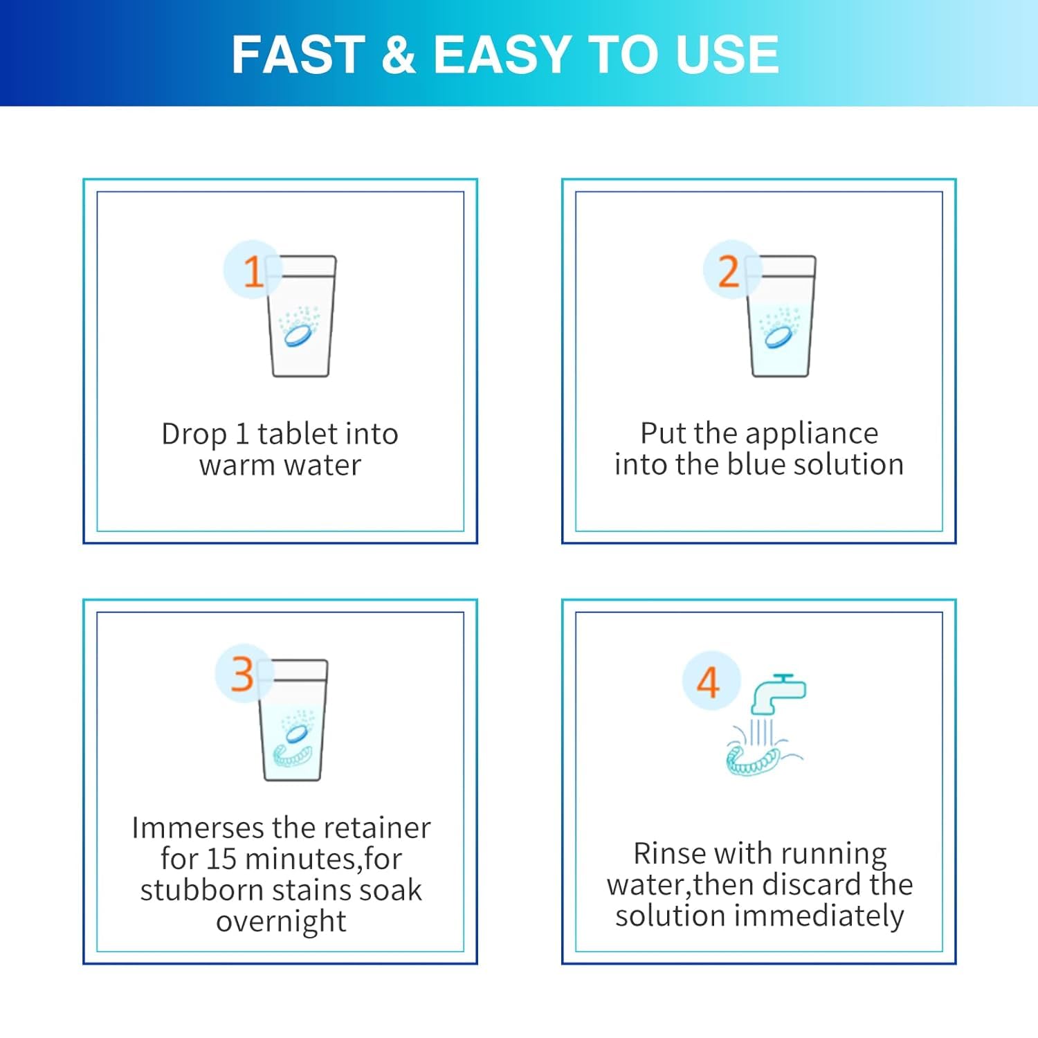 - QUCIK DISSOLVE: Our cleaning tablets adopt Reactive Oxygen Micromolecular Osmosis Technology, provide comprehensive cleaning and deep desccaling for your retainers, dentures or other dental appliances with no harm