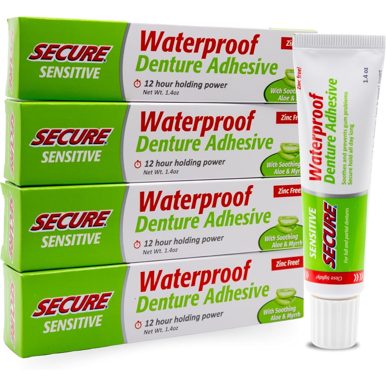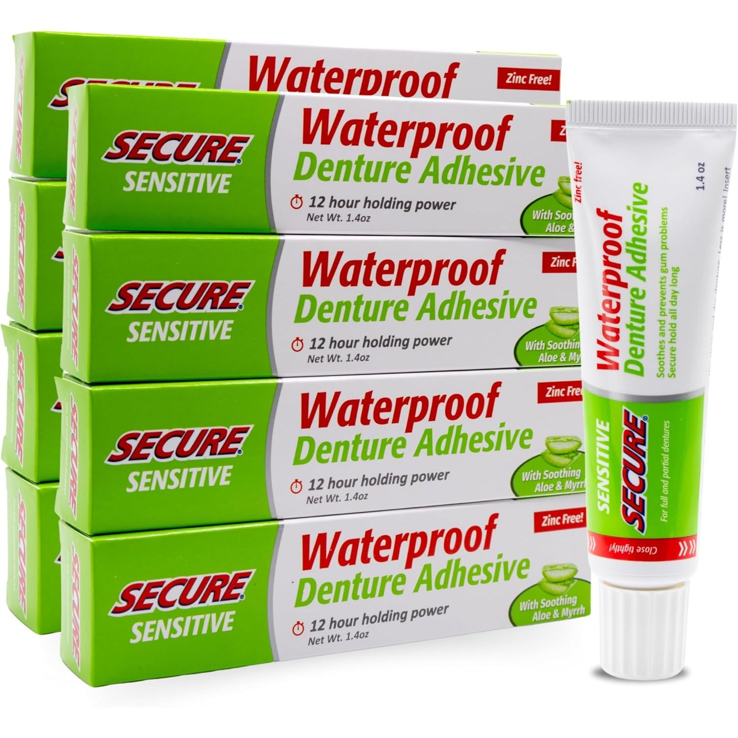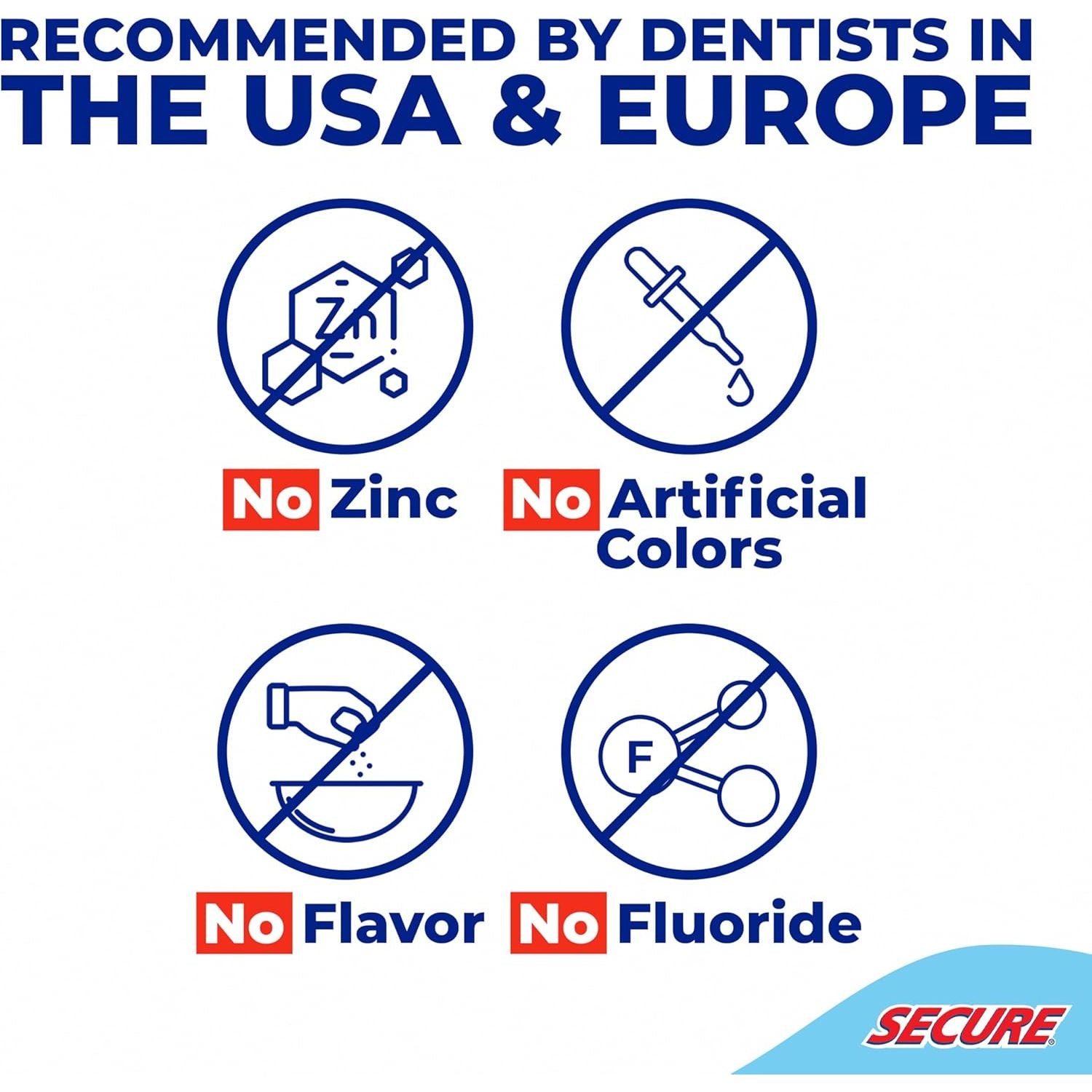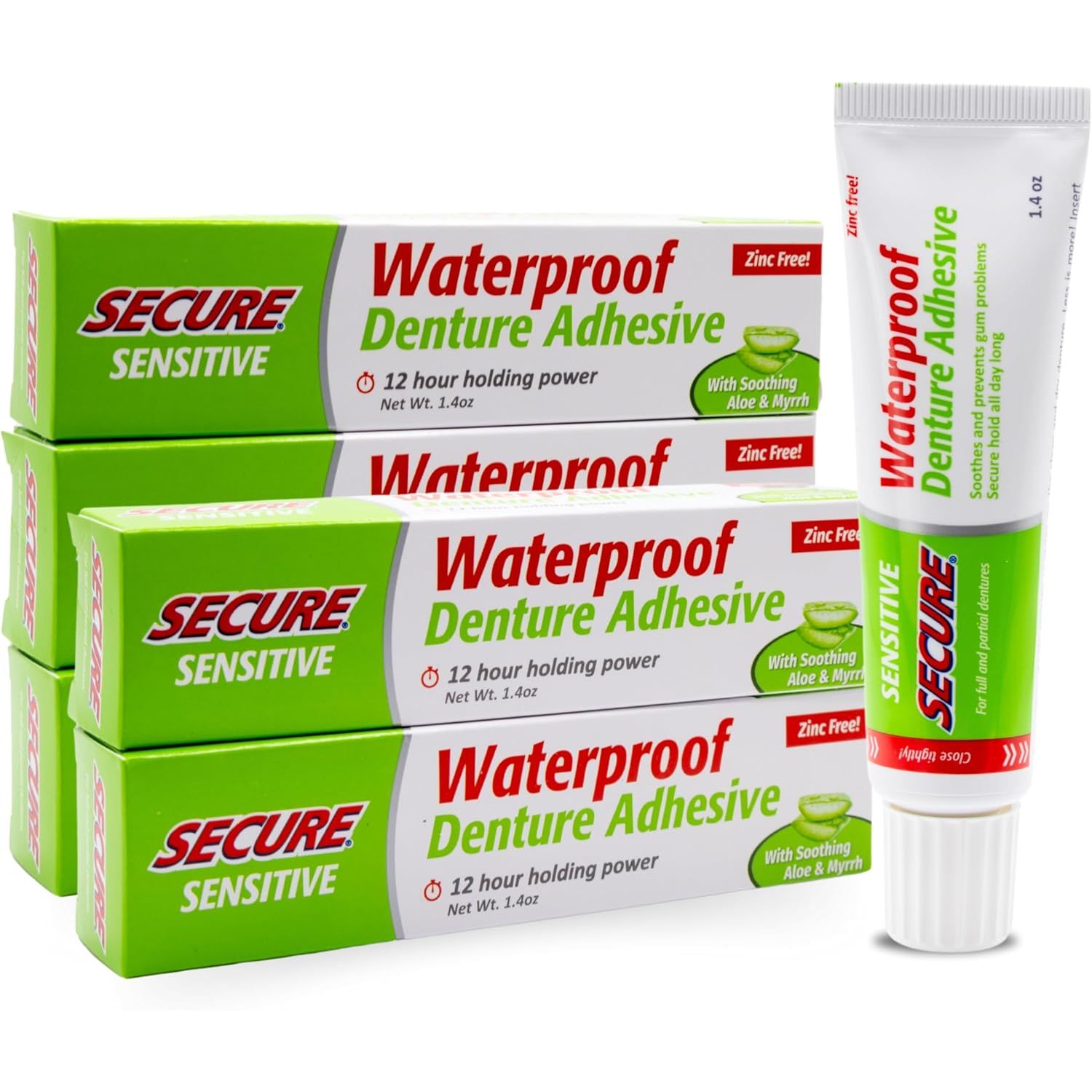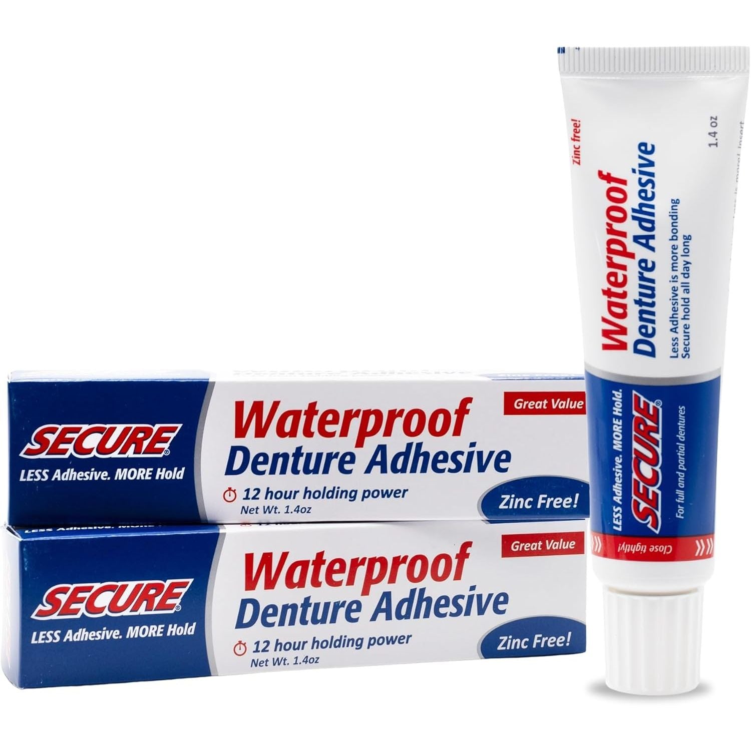 Secure’s waterproof, zinc‑free adhesive delivers up to 12‑hour hold you can trust—through food, drink, and conversations—emphasizing real comfort and confidence.