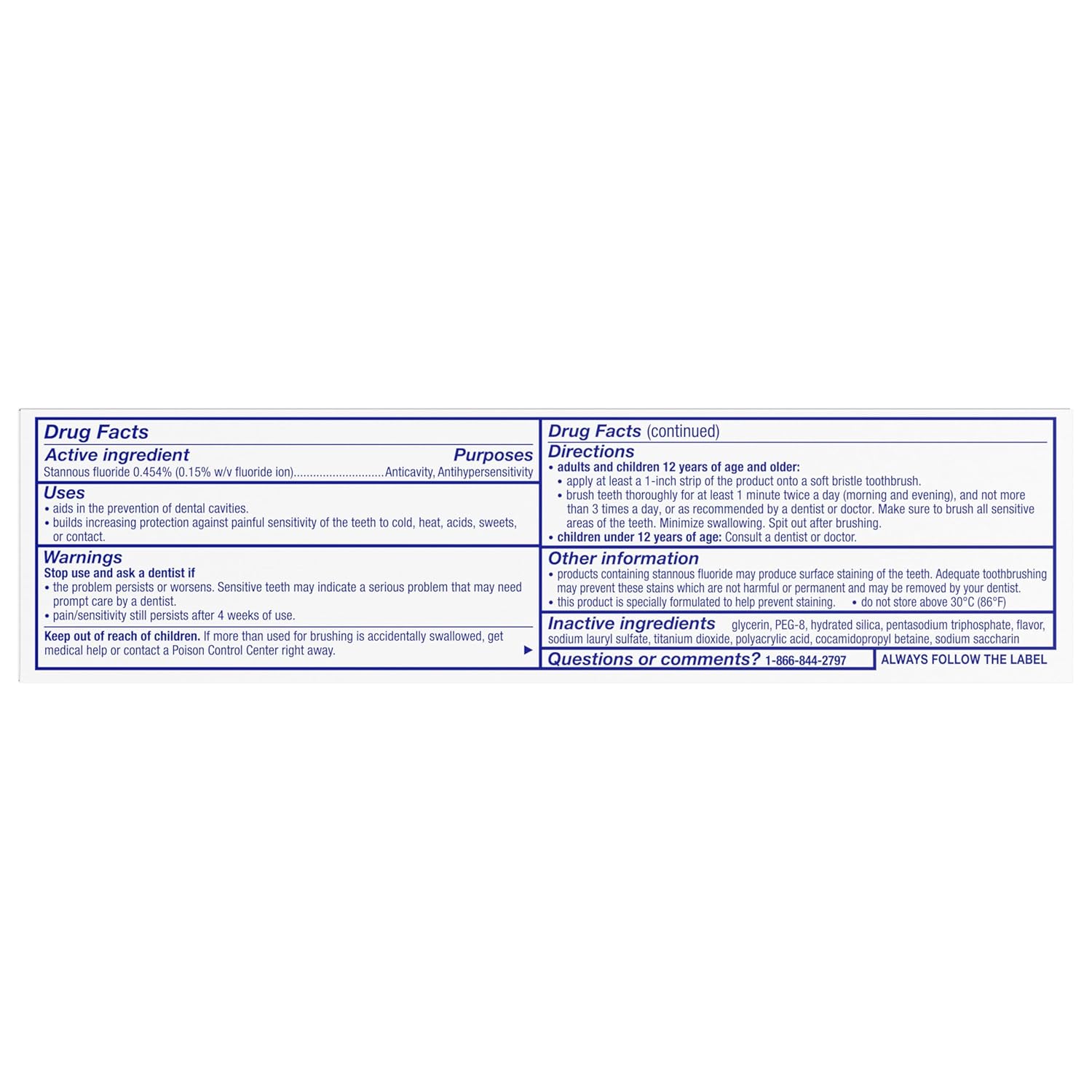 Sensodyne Rapid Relief Sensitive Toothpaste is a cavity prevention and sensitive teeth treatment that beats sensitivity pain in just three days, delivering lasting protection and relief. Specially formulated to protect you from pain triggers, this stannous fluoride toothpaste for sensitive teeth builds a protective layer over your exposed dentin with twice daily brushing. This extra fresh toothpaste also prevents cavities and leaves you with fresh breath, delivering all the benefits of regular toothpaste for healthy teeth. Available in a travel-size presentation, Sensodyne Extra Fresh toothpaste comes in a convenient travel size within TSA requirements, allowing you to easily take it with you. For best results, brush for two minutes, twice daily. Get lasting protection from tooth sensitivity with Sensodyne.