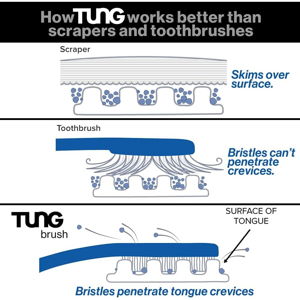 - NEVER FEEL ANXIOUS ABOUT BAD BREATH AGAIN: Fact: you can't smell your own breath; don't get caught not knowing! If you ever have lingering doubts about the freshness of your breath, The Original TUNG Brush and TUNG Brush Gel will give you complete confidence; WATCH OUR INFO VIDEO LOCATED IN OUR IMAGES TO LEARN THE FACTS