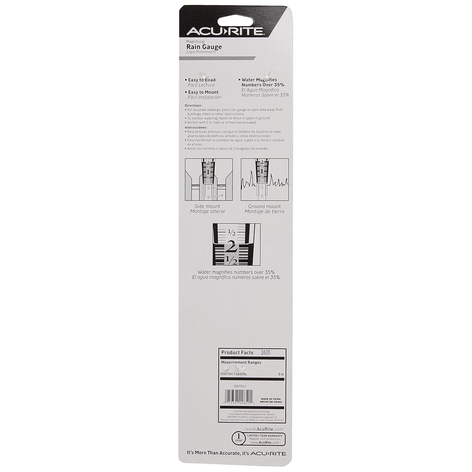- AcuRite rain gauge measures up to 5 inches of rainwater