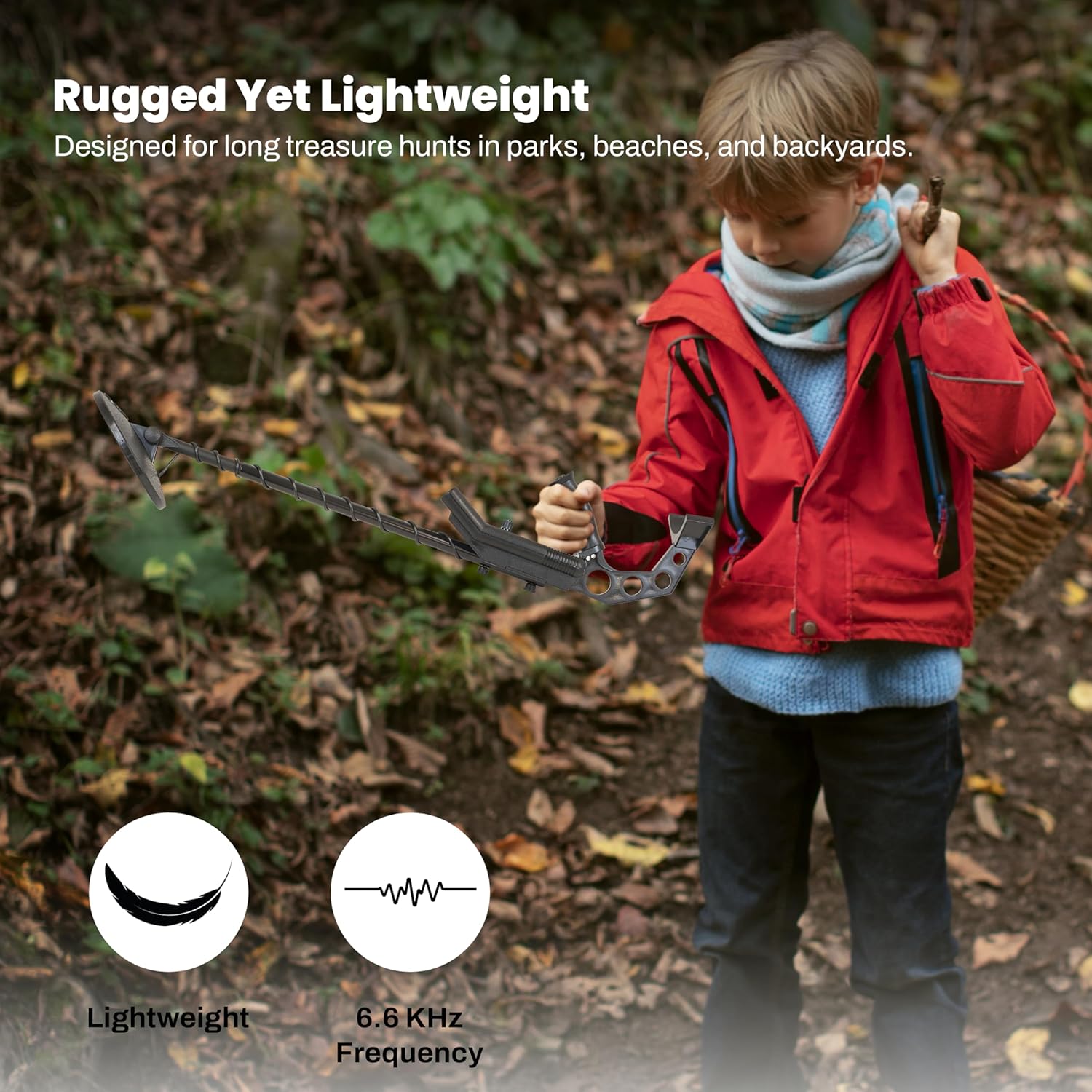 - Perfect Beginner Metal Detector for Kids: Lightweight and easy to use, this kids metal detector features adjustable sensitivity and trash elimination—ideal for young explorers, beginners, and families seeking outdoor treasure hunting fun.