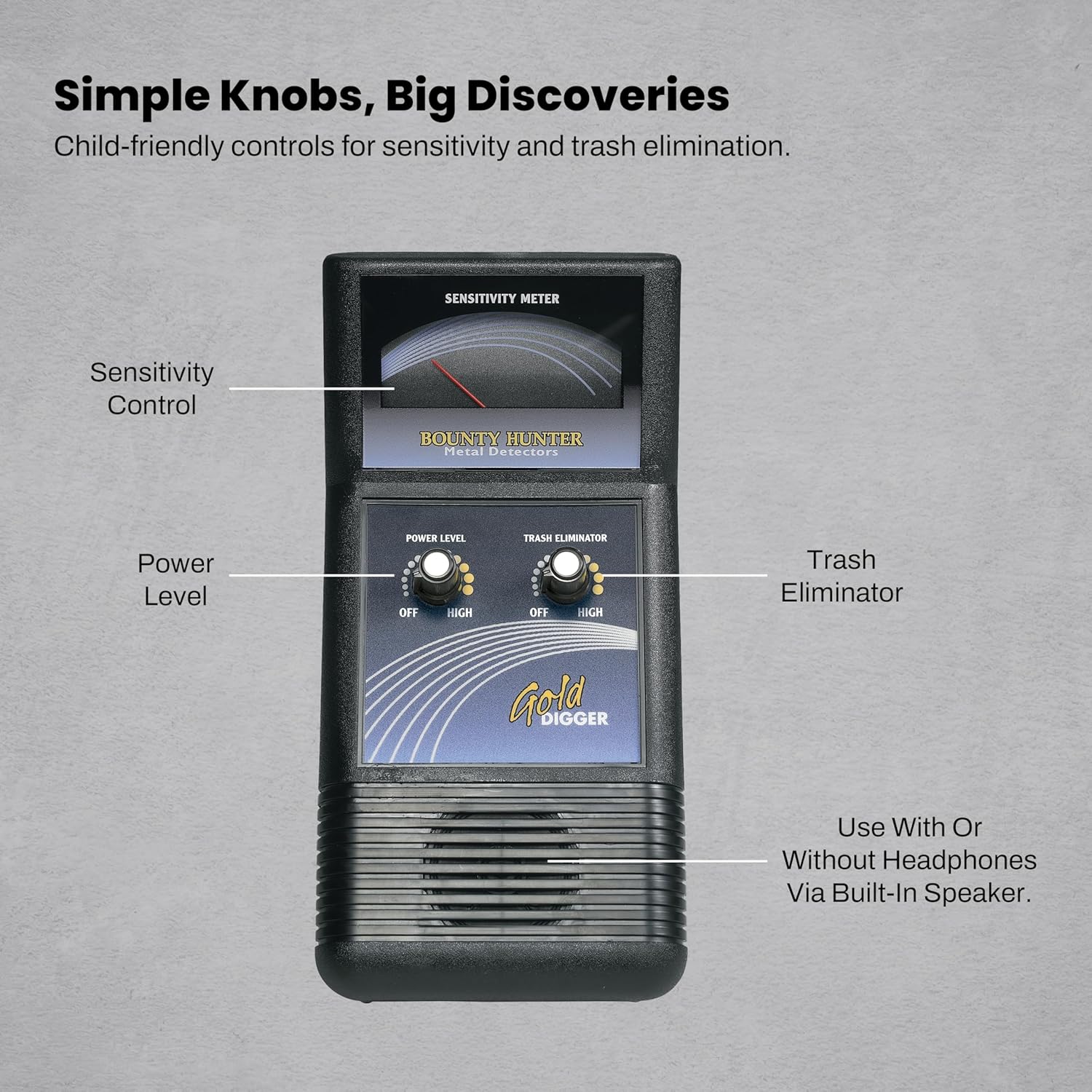- Bounty Hunter Gold Digger Kids Metal Detector – Lightweight Beginner Metal Detector for Treasure Hunting Coins, Jewelry, Relics & Gold – Waterproof Coil, Trash Eliminator – Made in USA