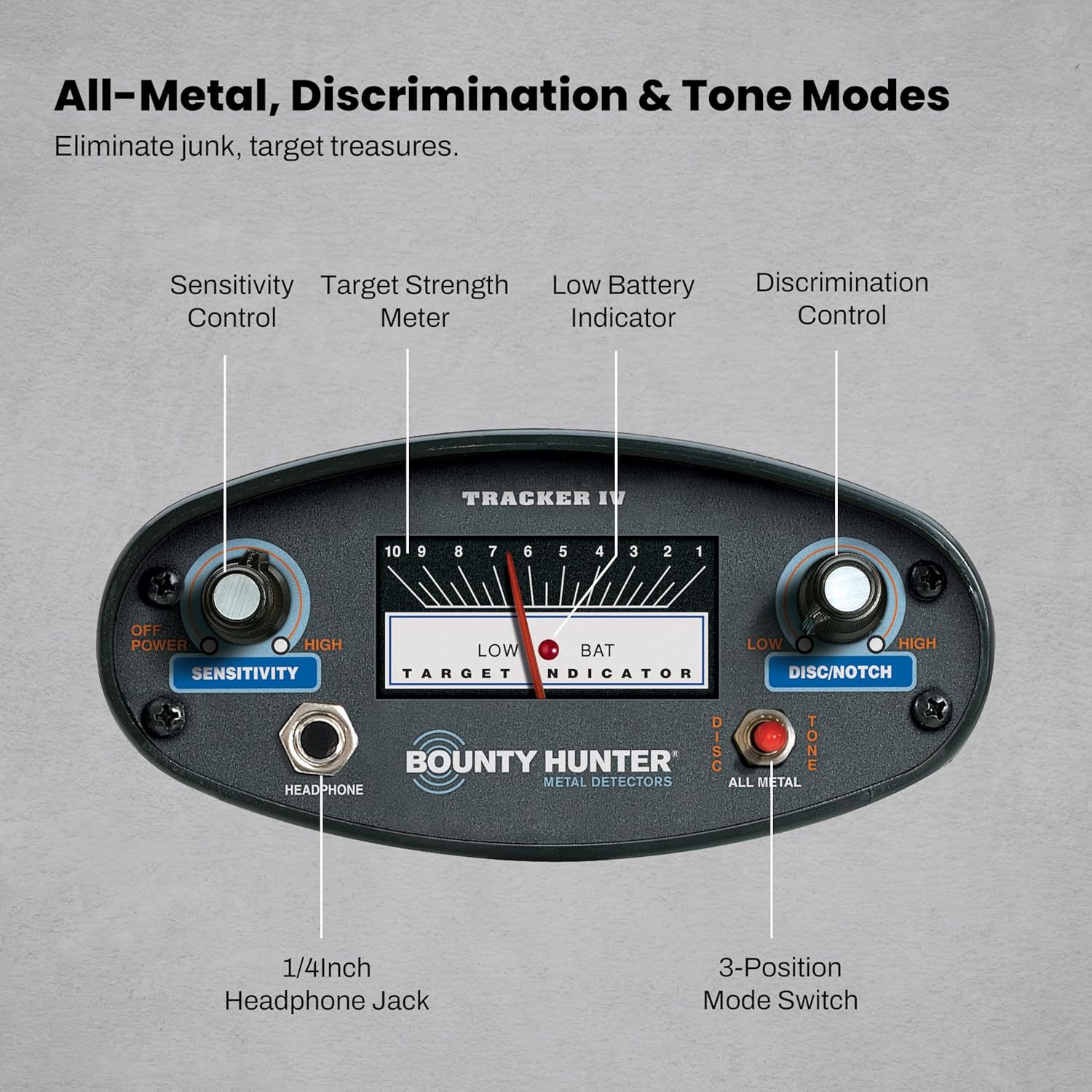 - Bounty Hunter TK4 Tracker IV Metal Detector – All-Terrain Gold, Silver, Coin & Relic Finder with 8" Waterproof Coil, 3 Detection Modes – for Adults & Kids – Made in USA