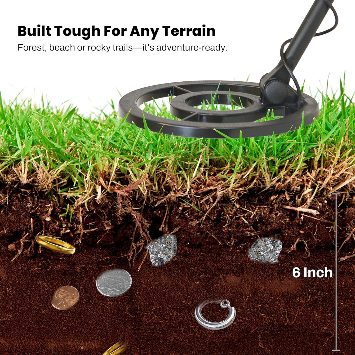 - All-Terrain Treasure Detection: Hunt for coins, gold, and relics anywhere—beach, backyard, or forest—with this waterproof metal detector for adults and kids. Rugged design handles rocky, muddy, or wet conditions with ease and precision.