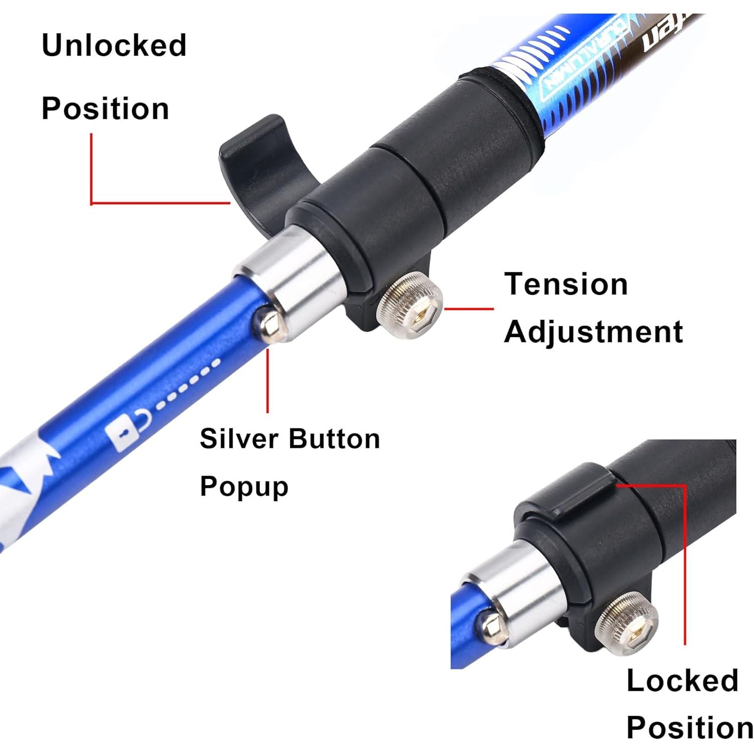 After having pulled the hidden silver button out(Important), you will find it very easy to operate. If it is the first time to use the collapsible trekking pole, please watch the videos under the picture or assemble steps on detail page and instructions which come with the product before use it.