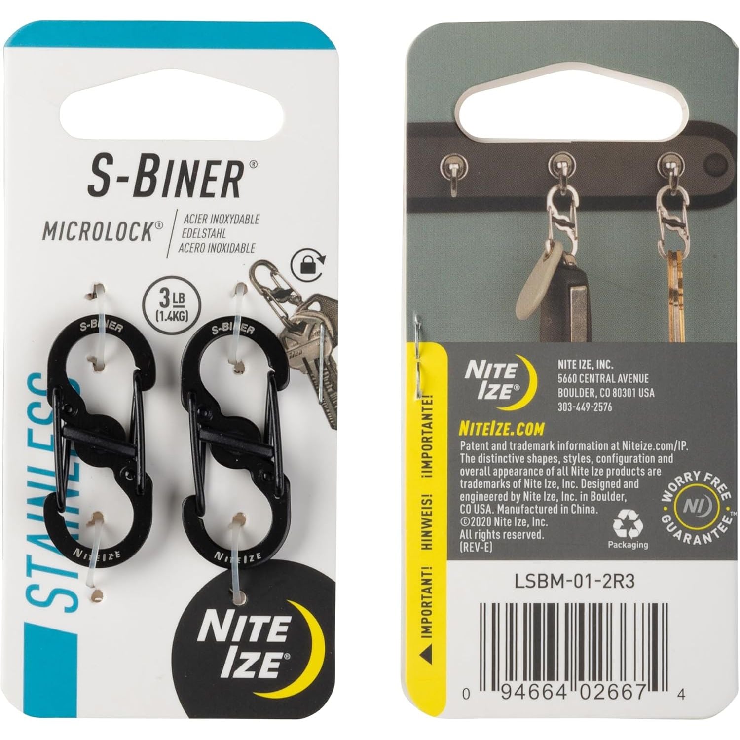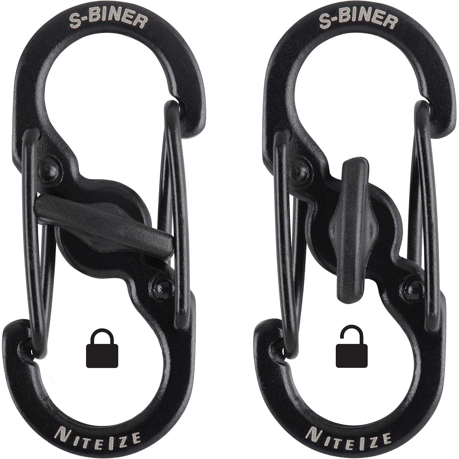 - Nite Ize S-Biner MicroLock Stainless Steel - S-Biner with Locking Dual Sided Gates - Keep Keys Secure with Carabiner Key Holder - Black (2 Pack)