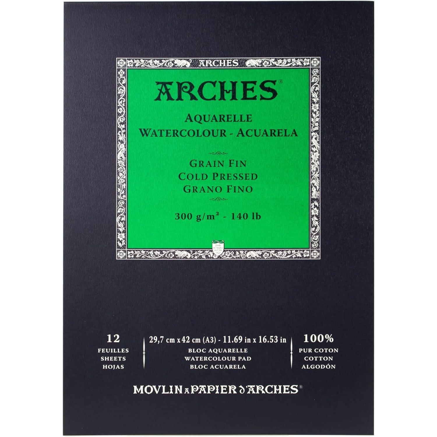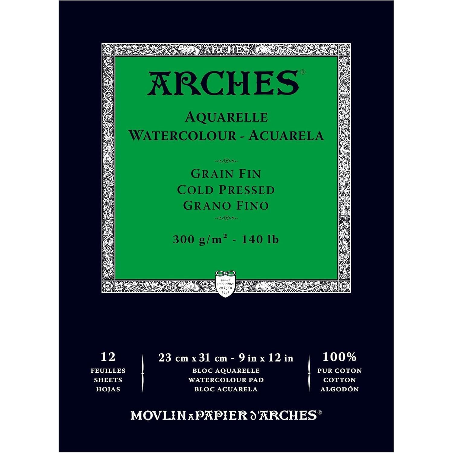 - Arches Watercolor Paper Pad, 140 pound, Cold Press, 9"x12"