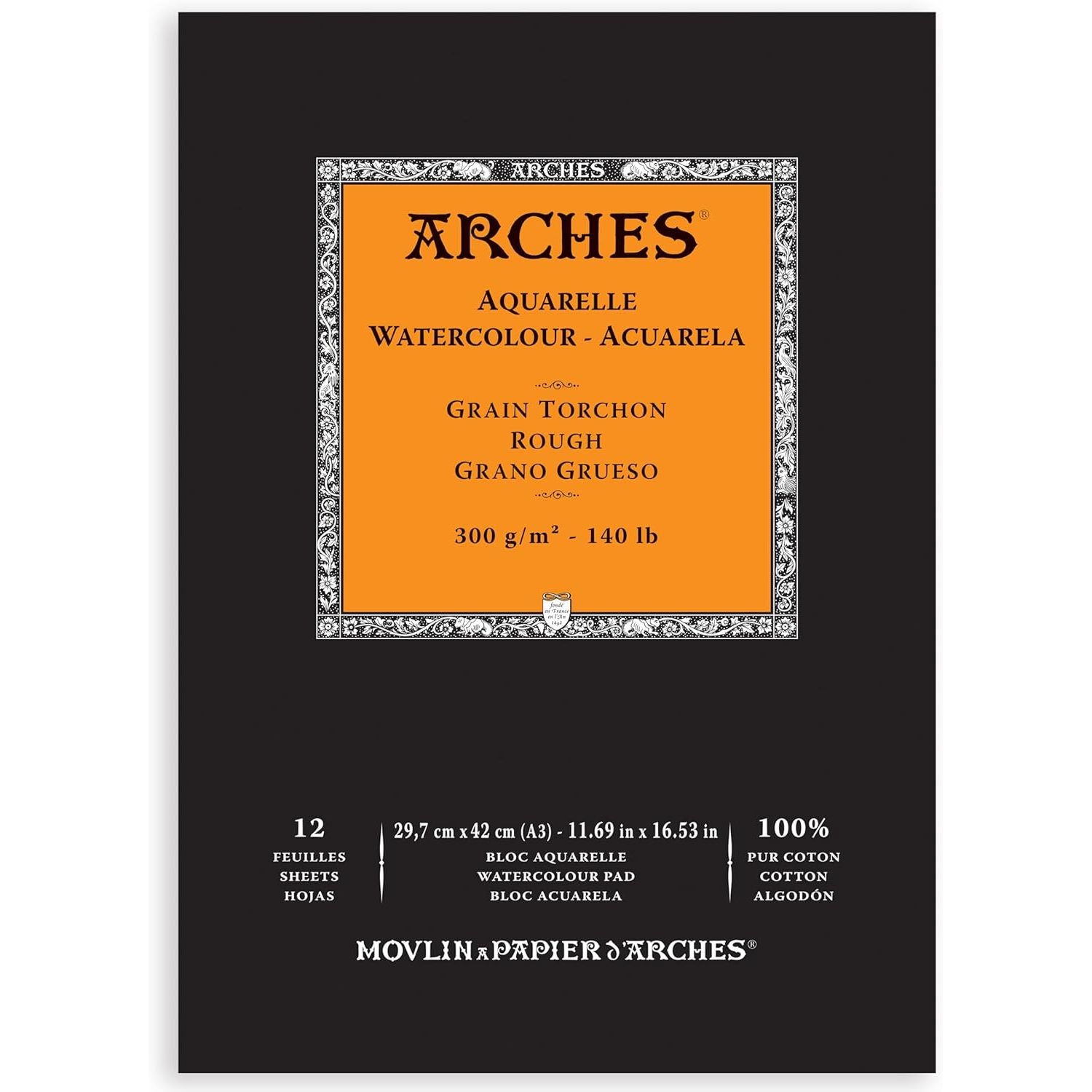 Arches watercolor paper is available in several formats and sizes including blocks, pads, sheets and rolls, and 3 luxurious textures; hot press, cold press, and rough. Made on a cylinder mold and gelatin sized to the core, repeatedly correct mistakes or use heavy washes while preventing buckling or warping.