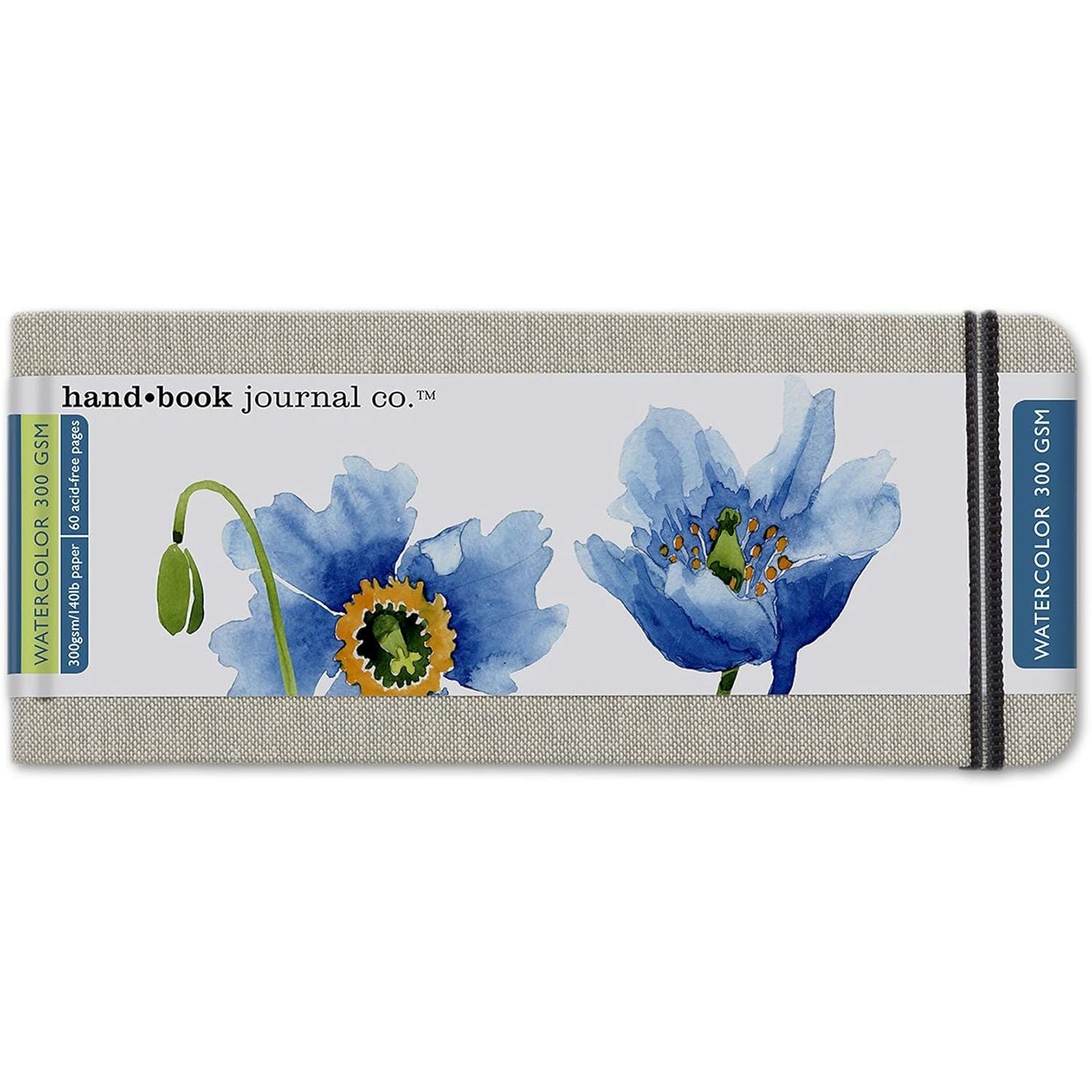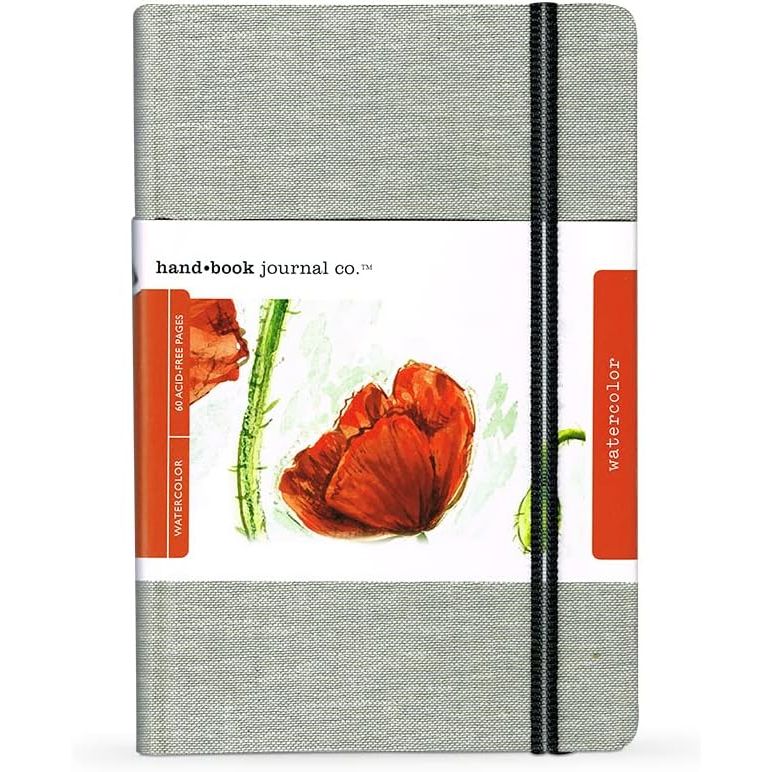 Hand-book Trav-e-logue Watercolor Books are designed especially for the watercolor artist. Watercolor travel journal books are bound in natural linen and offer watercolorists an attractive and practical option for travel painting. The books feature 60 pages of soft-white, acid-free, 200 gsm (95 lb) watercolor paper with a pleasing cold-press finish. The travel journals have a durable elastic closure and a very useful clear envelope tucked inside the back cover. These watercolor books are ideal for the artists looking for a portable watercolor sketch book.