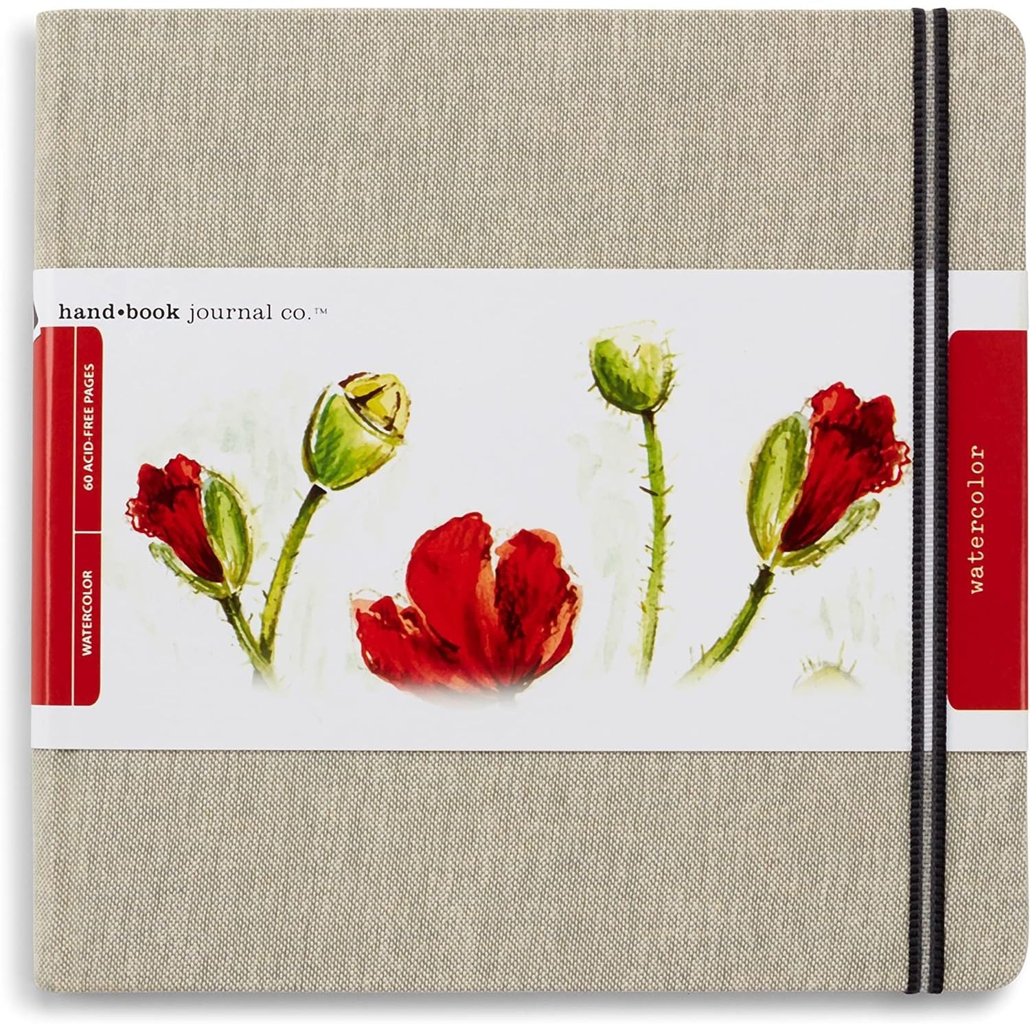 - Handbook Watercolor Journal, 8.25 x 8.25 Square, 200 GSM Cold Press Paper, Natural Linen Cover, 60 Pages Art Sketchbook