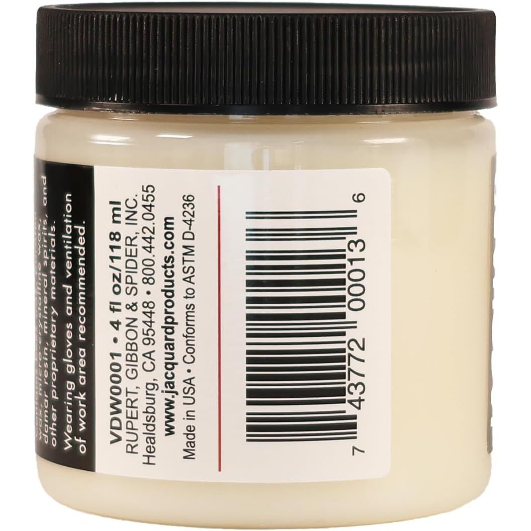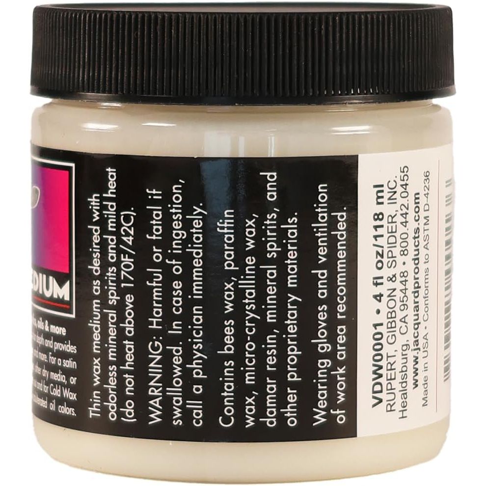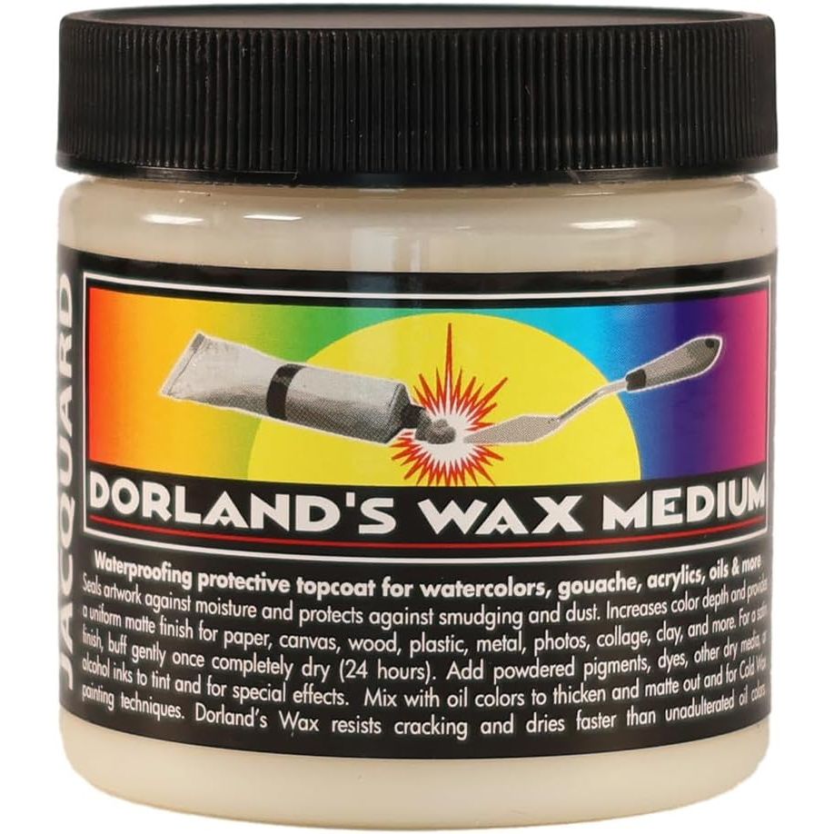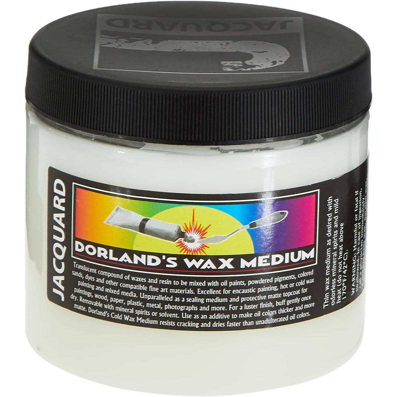 Jacquard Products-Dorland's wax medium. Translucent compound of waxes and resin to be mixed with oil paint powdered pigments powdered metals colored sands dyes and other compatible fine art materials. Excellent for encaustic painting hot or cold wax painting and mixed media. Also use as a protective coating for paintings wood plastic metal projects or photos. This package contains one 4oz jar of wax medium. Flammable: do not heat above 165 degrees. Made in usa.