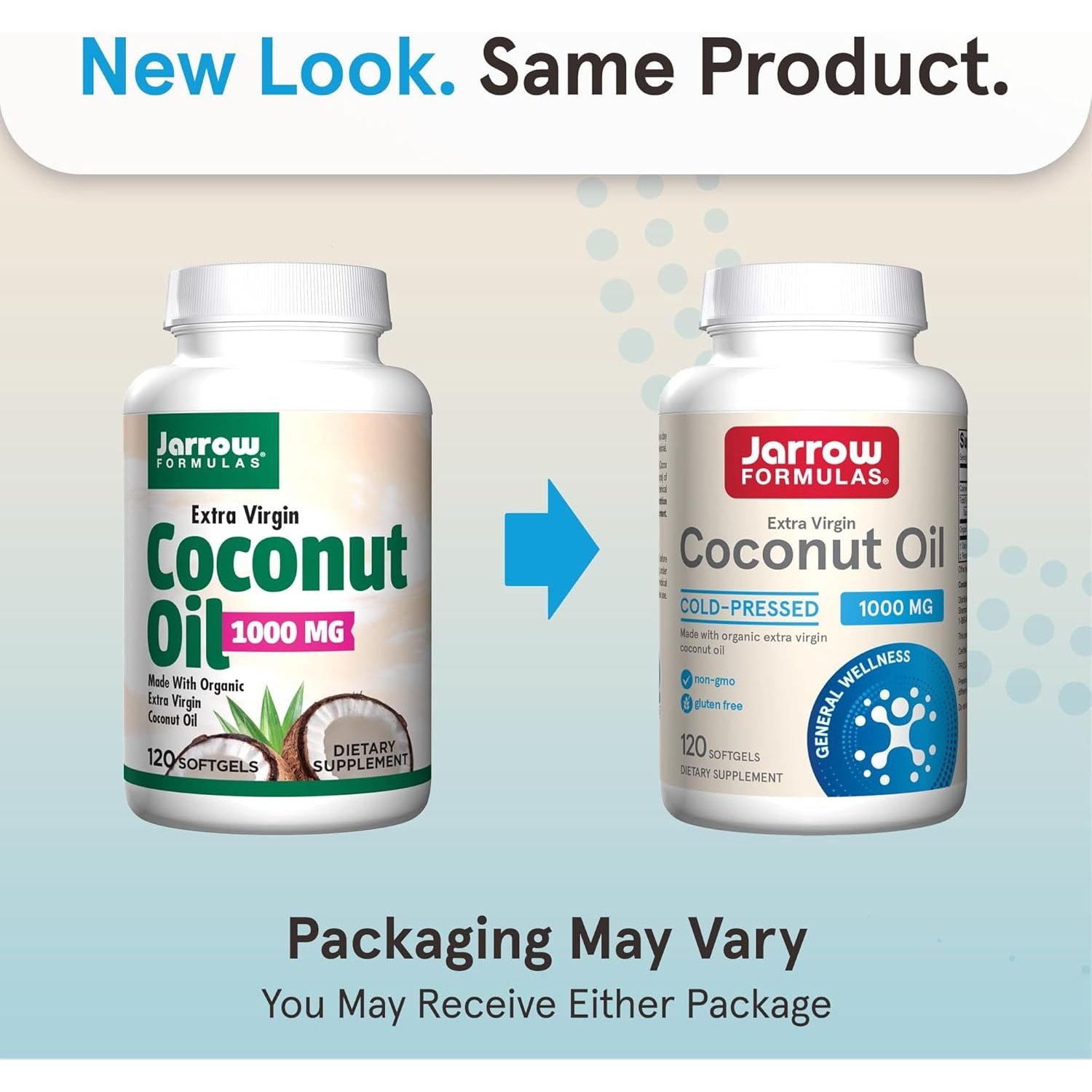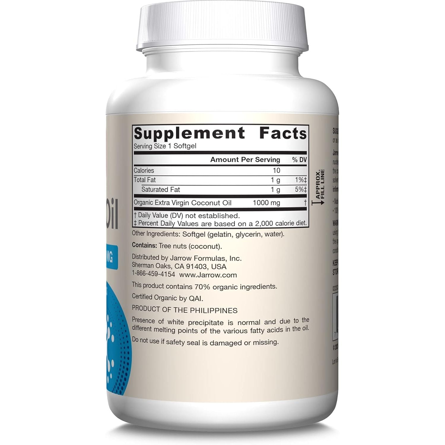 - Coconut Oil Supplement: One 120 count bottle of Jarrow Formulas Extra Virgin Organic Coconut Oil Softgels for 120 day supply