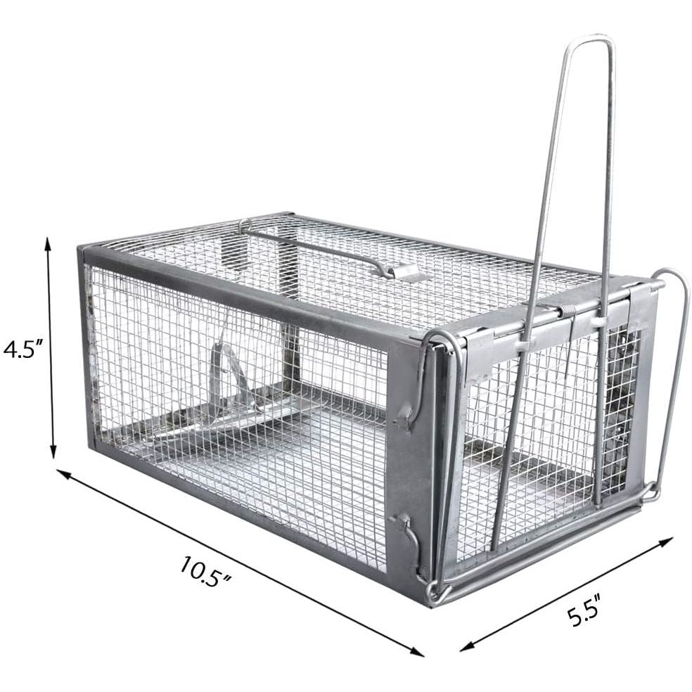 - 10.5 x 5.5 x 4.5 inches cage trap, ideal for chipmunk, rat and mouse, catch and release them alive