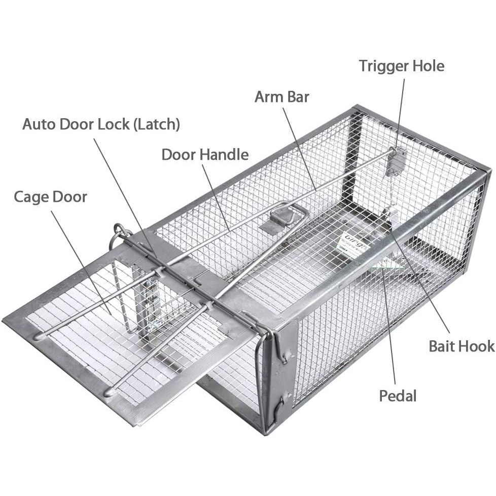 - High sensitive structure to catch rodents and auto door lock to prevent them from escaping