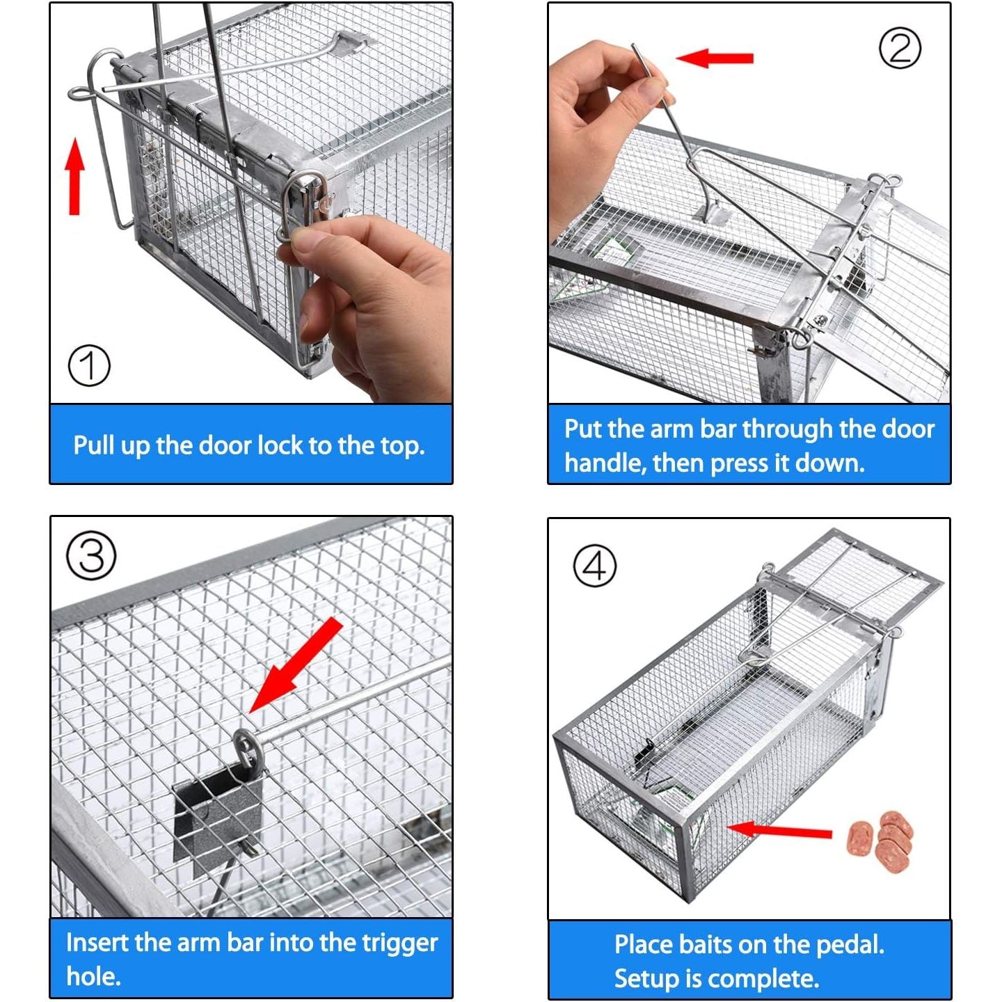 Gingbau Humane Chipmunk Rat Trap - Once the pedal being touched slightly, the trap door will close immediately. - Catch small animals alive, and release them far away easily. Target Animals and Limitations - Ideal for chipmunks, rats, mice, voles and hamsters - NOT SUITABLE FOR squirrels, opossums and other large animals because their teeth are strong and sharp, they may chew through the trap if they are trapped for too long. Specifications - Product size: Small - Cage dimensions: 10.5 x 5.5 x 4.5 inches - Material: Galvanized iron How To Use The Trap - Watch the video on this Amazon detail page to learn how to set the trap up. - Test the trap with a stick and check if the door lock can close smoothly before placing it. - Place the trap in the place where the target rodents often appear, such as corners, along the walls, garage and etc. Notice - We suggest that you wear safety gloves when releasing the animals to avoid any injuries. - Check your local catch-and-release laws before trapping. Customer Service - If the cage is damaged during short-term use, please contact us with the broken product pictures for a refund or replacement freely. - Any questions, please message us freely.