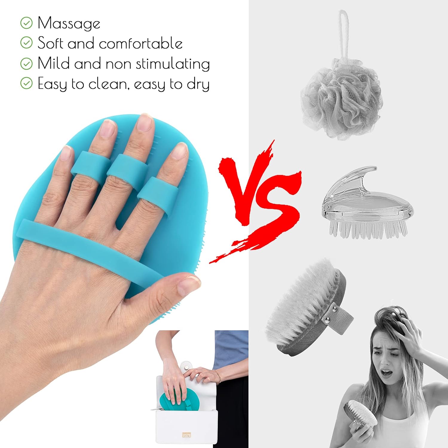 - 2 Pack Soft Silicone Shower Brush, Body & Face & Short Hair Wash, Bath Exfoliating Skin Massage Scrubber, Dry Skin Brushing Glove Loofah, Fit for Sensitive and All Kinds of Skin (Blue+Gray)