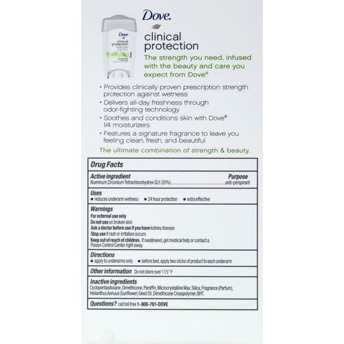 Dove Clinical Protection Original Clean Antiperspirant contains a strong antiperspirant formula, which provides 48 hours of sweat and odor protection.