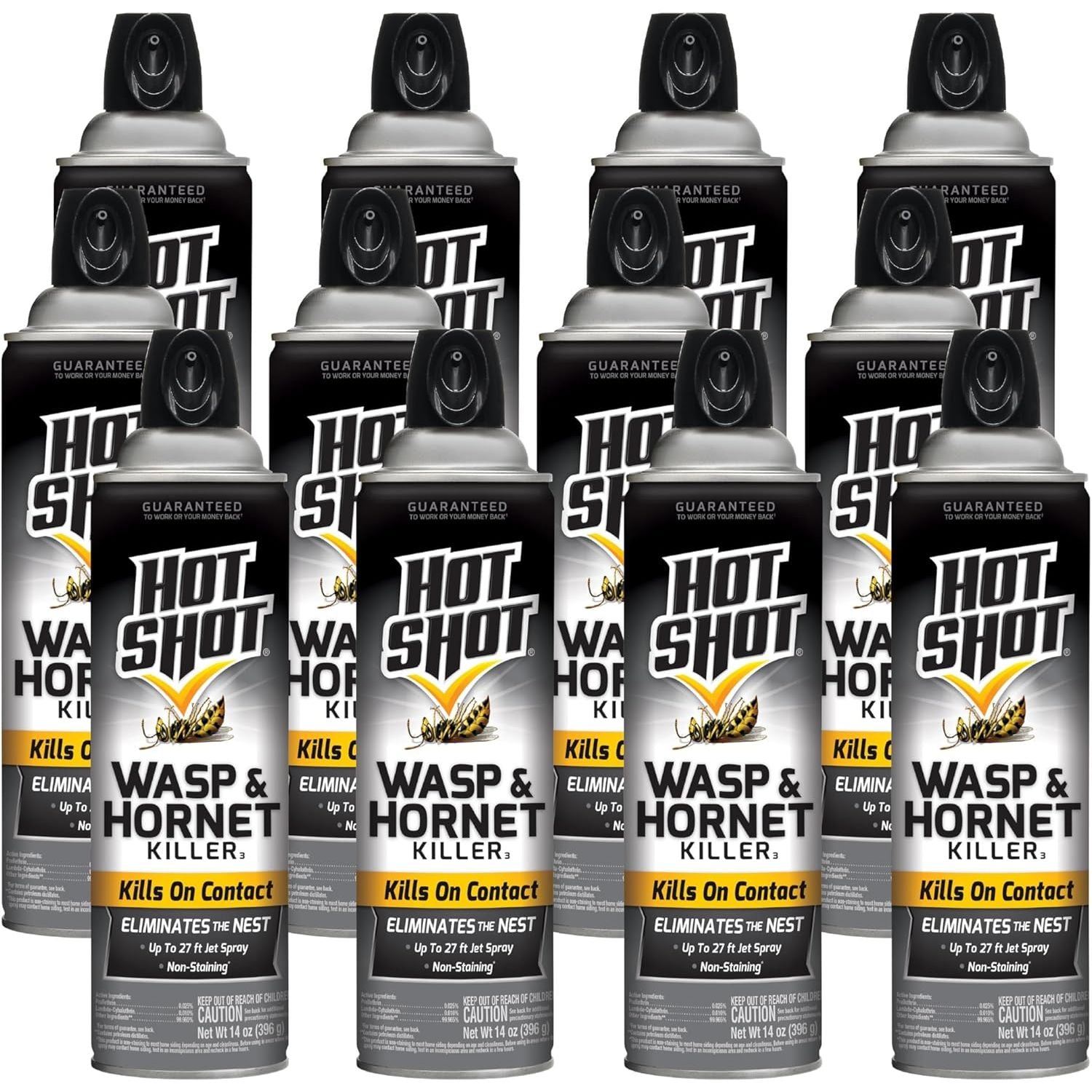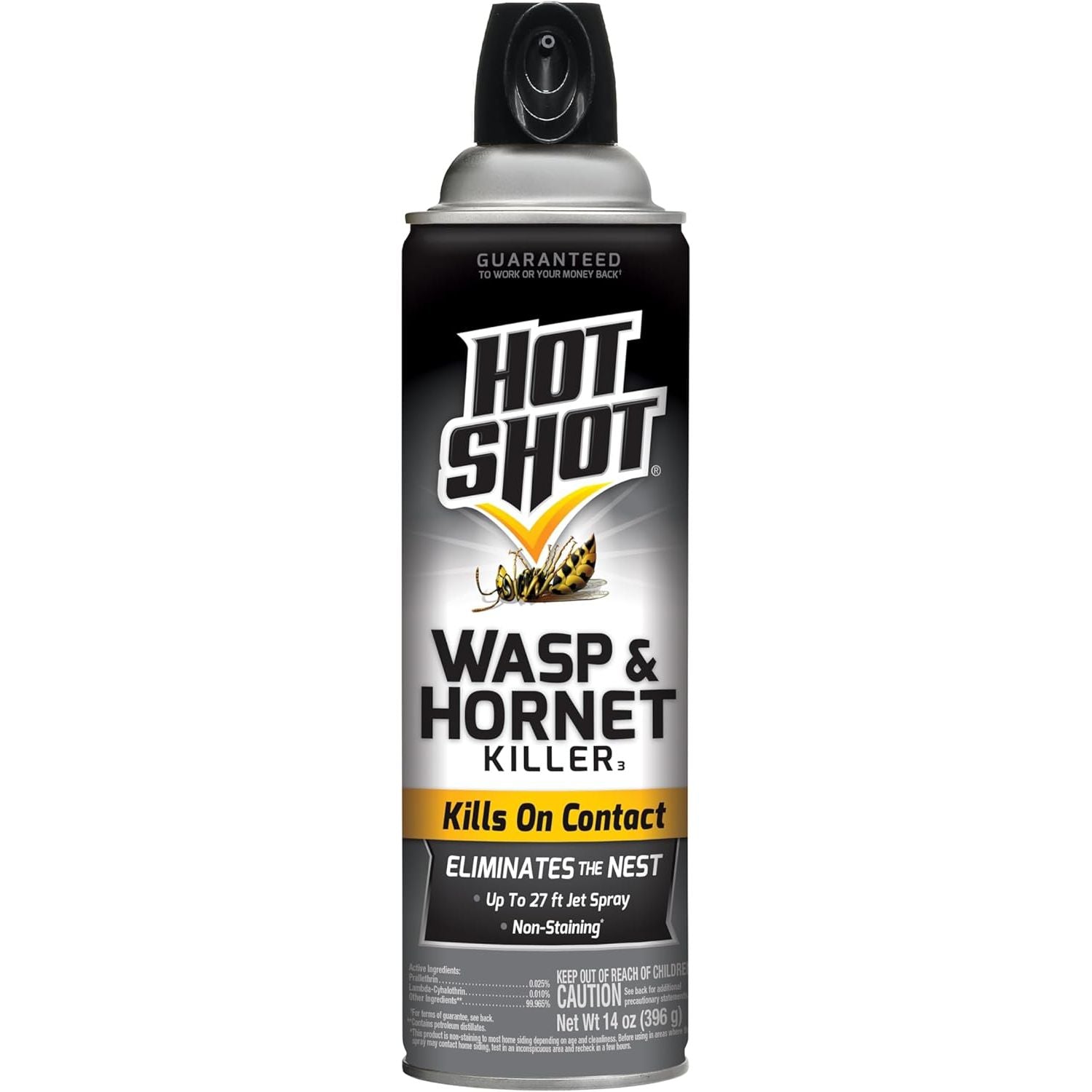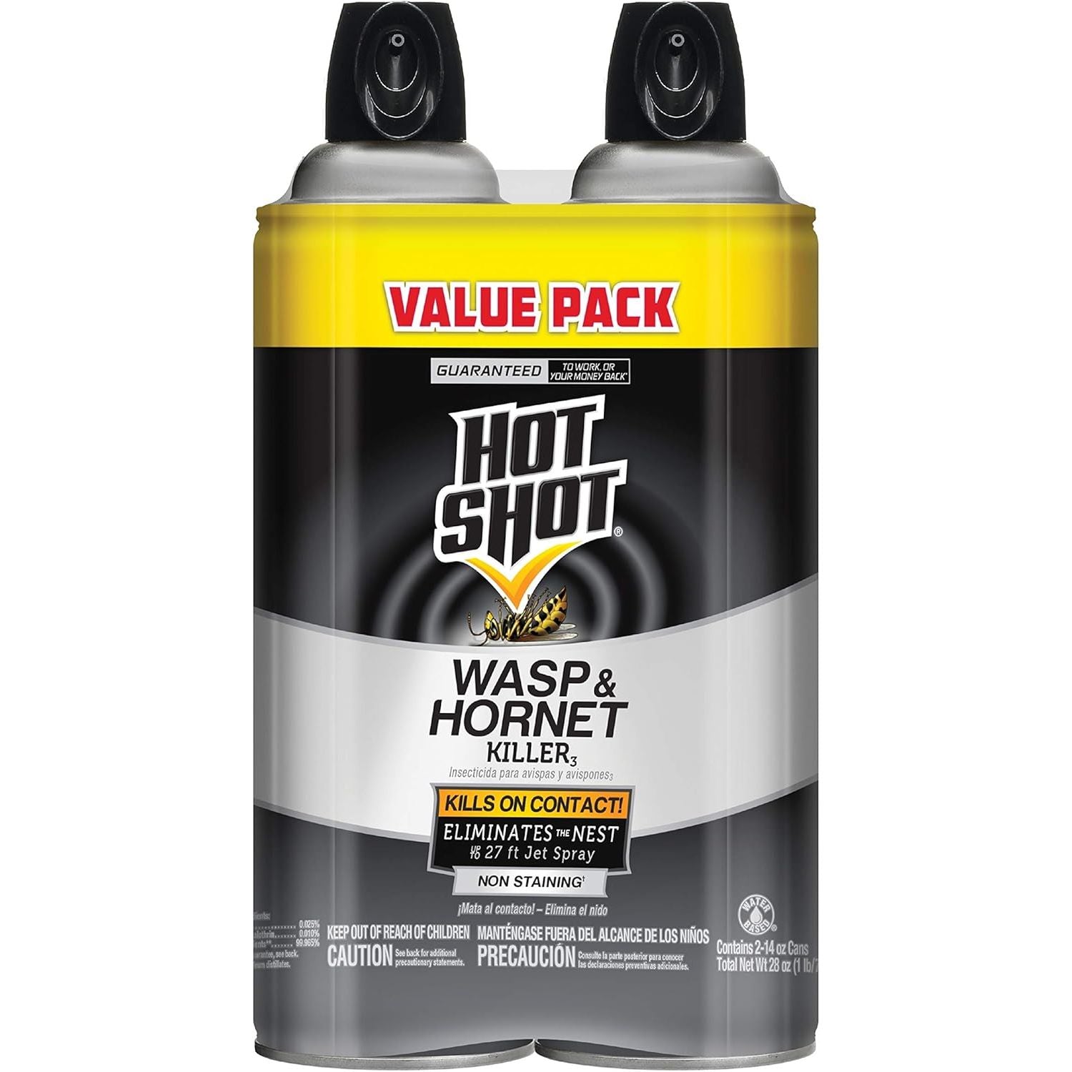 - Hot Shot Wasp & Hornet Killer Spray, For Insects Eliminates the Nest, Sprays Up To 27 Feet, 14 fl Ounce, 2 Pack