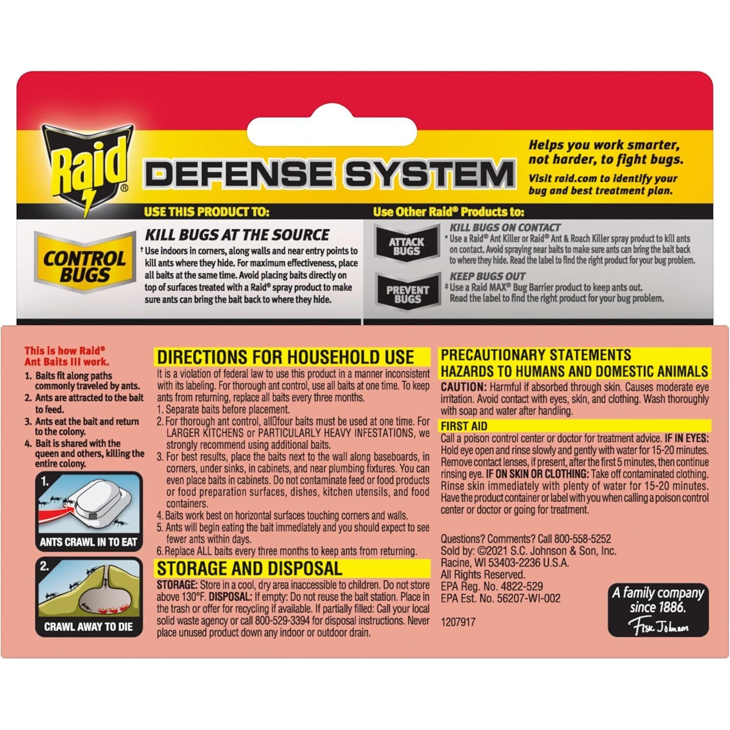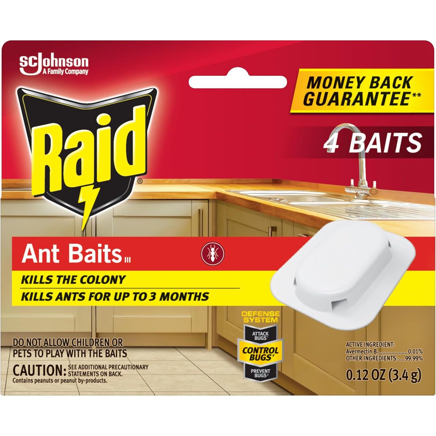 - Raid Ant Killer Baits, For Household Use, Kills the Colony, Kills Ants for 3 Months, Child Resistant, 4 Count