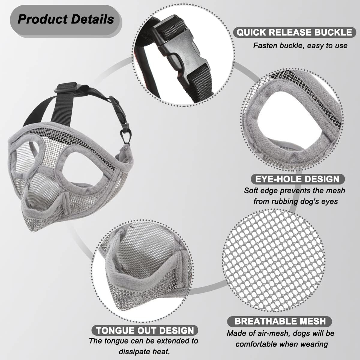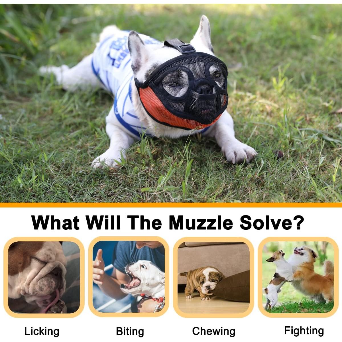 - Breathable Mesh Dog Muzzle: Made of skin-friendly breathable mesh and sturdy nylon, the wide eye-hole design and soft edges are more comfortable for your bulldog, which can protect your dog's eyes and nose from friction. Ideal for flat-faced dogs who are biting people when seeing a veterinarian or grooming