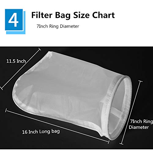 Material: High Quality Nylon Bag , Stainless Steel Ring Micron rating: Available in 50micron , 75micron ,100micron , 150micron , 200micron , 300 micronand 400 micron Ring width: 7 Inches Length: 16 inches (Long) Package Quantity : 1 Pack Application : Chemical Industry Filtration of wine, beer,fruit juice, and edible oil Filter paint, paint,ink Aquarium,Water purification Kindly Tips:""Porosity"" is defined by nominal micron ratings (1, 5,10,25,50,75,100,200,300,400,500) indicating the largest particle that can pass through, in general, and reflecting an increase in the density. 1Micron mesh very small,200Micron mesh more wider,400micron mesh holes relative big"