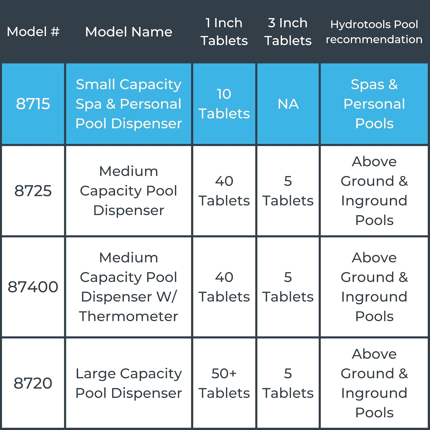 - HYDROTOOLS BY SWIMLINE 8715 Mini Chemical Dispenser For Spas and Personal Pools| Compatible With Bromine & Chlorine Supports 1’’ Tablets | Adjustable Control Ring For Customizable Flow Rate
