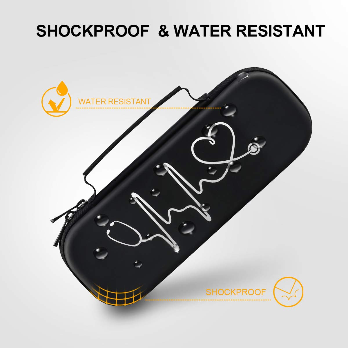 - This stethoscope holder is Semi Waterproof, shockproof, Stylish and Durable. Guaranteed to prevent any damage to your Stethoscopes. Double zipper design provides easy access to insert and remove your stethoscope and nurse accessories for work.