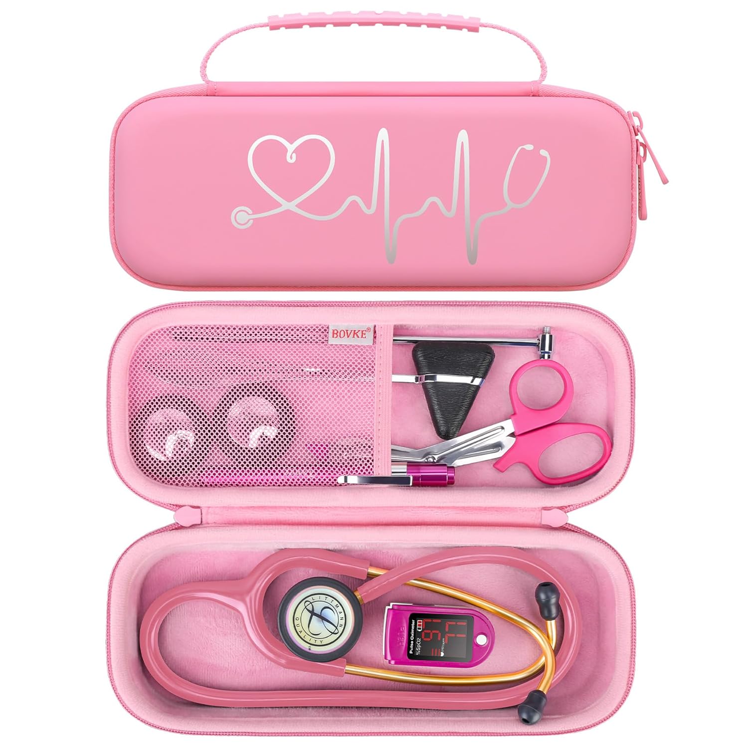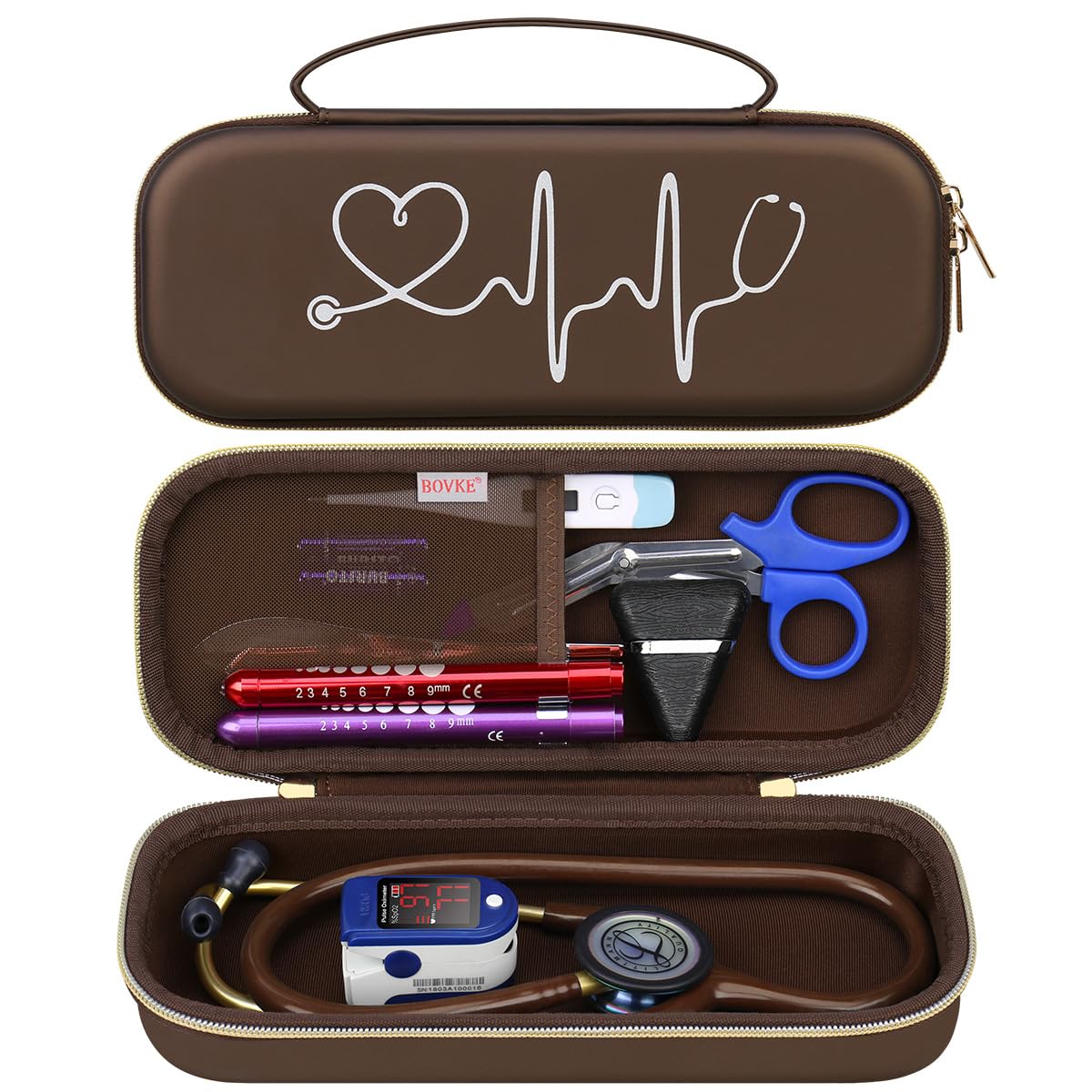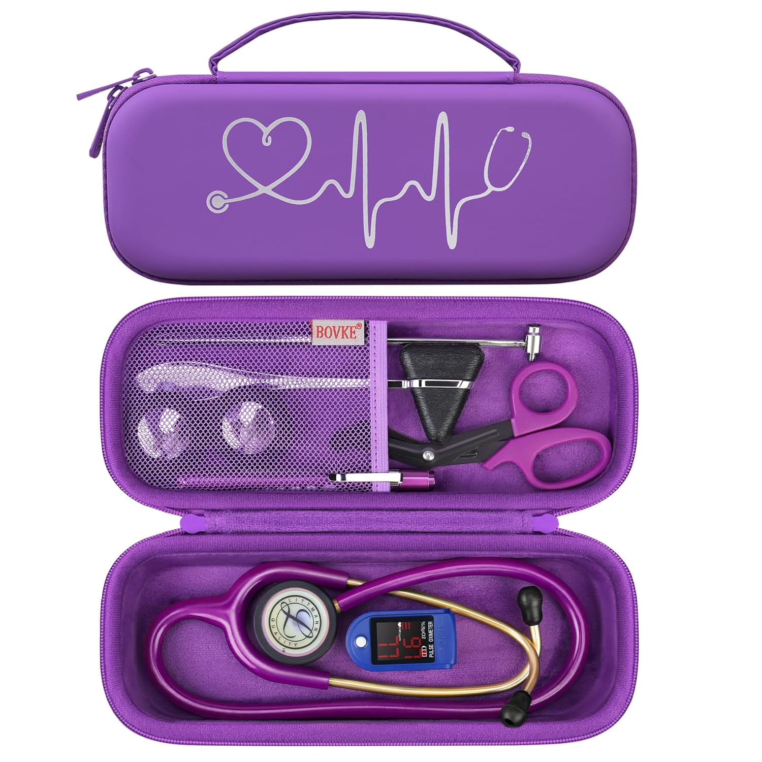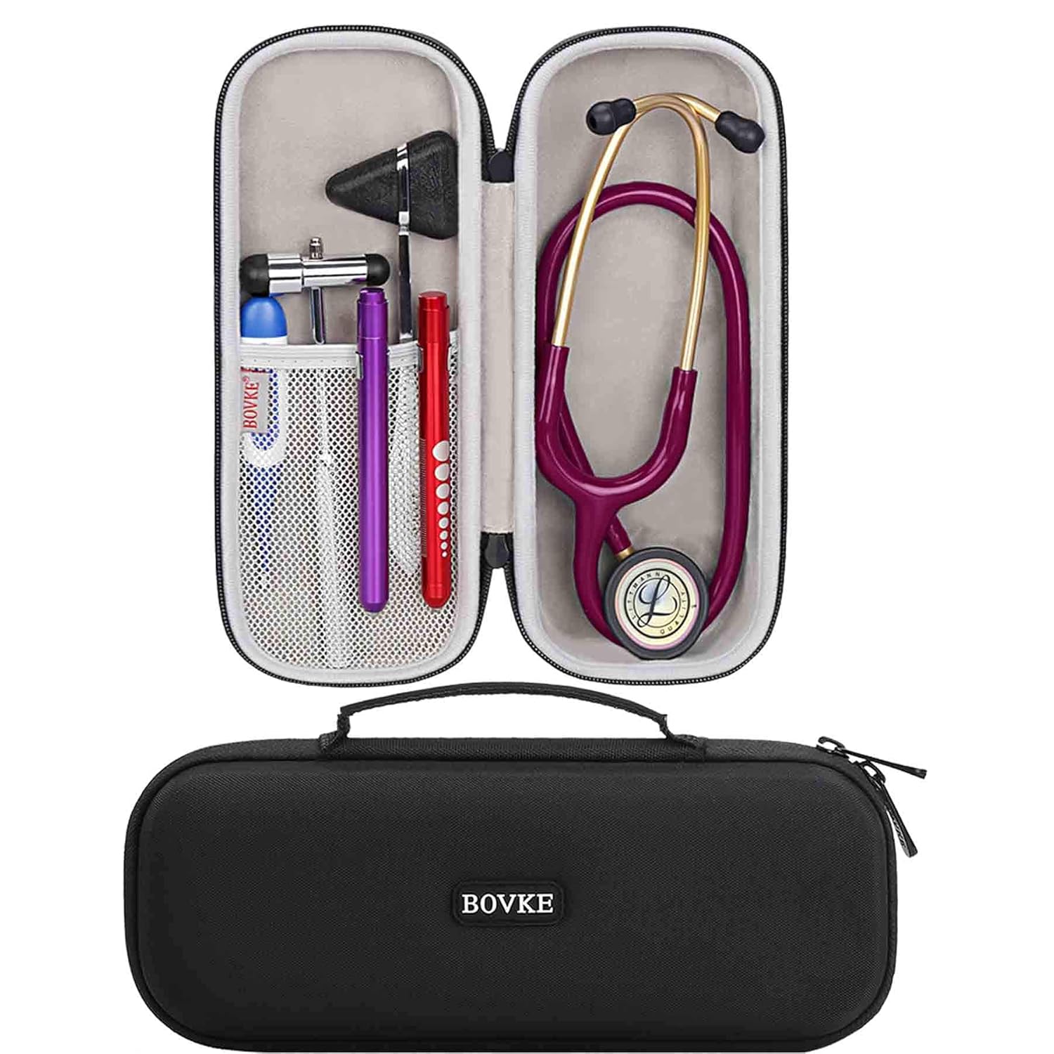 - BOVKE Stethoscope Case for 3M Littmann Classic III, Lightweight II S.E, MDF Acoustica Deluxe Stethoscopes - Extra Room for Medical Bandage Scissors EMT Trauma Shear and LED Penlights, Black