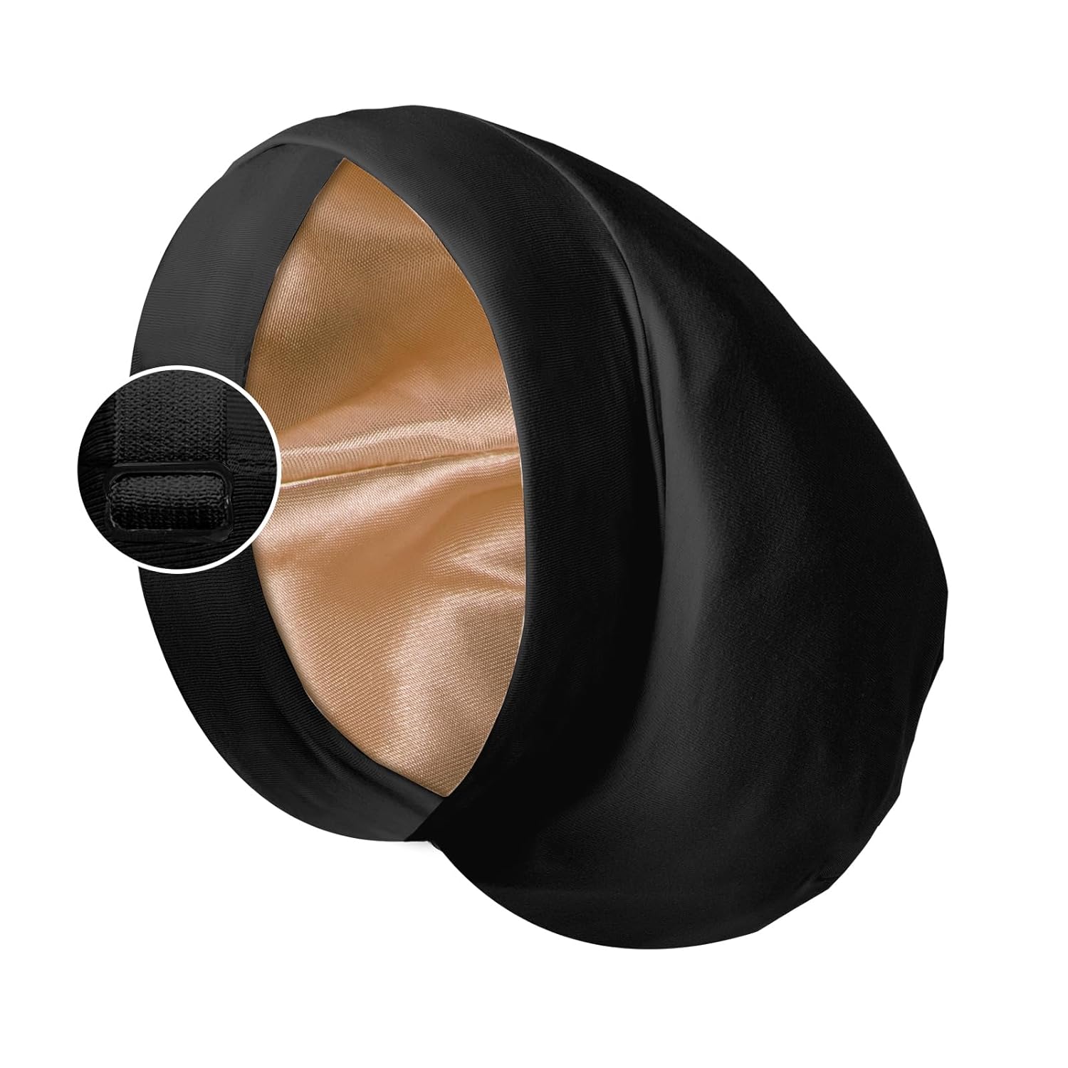 - Satin Bonnet Silk Lined Sleep Cap- Adjustable Hair Cover for Women Men Frizzy Hair Night Cap Patients Care