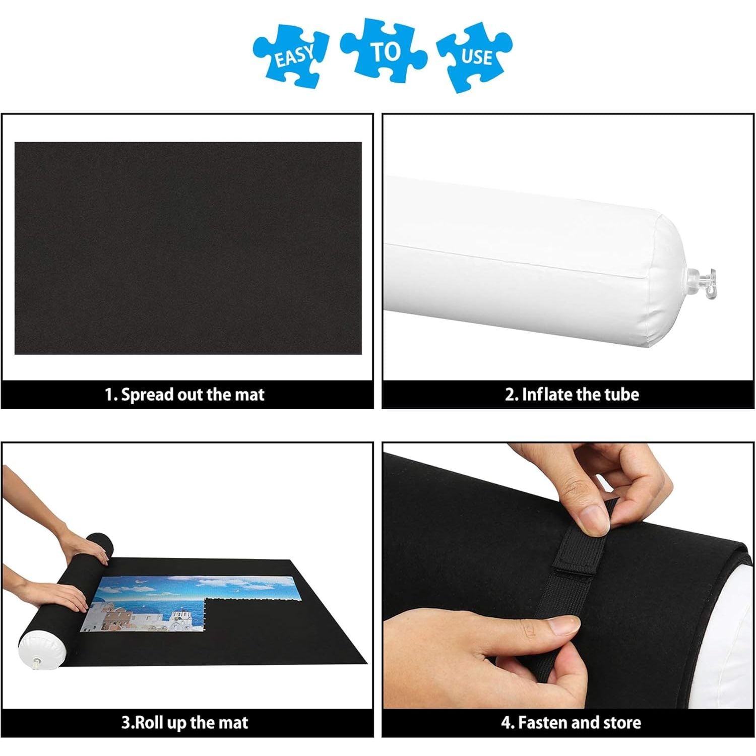 - Two Elastic Bands For Secure Hold - Inflate the tube and roll the mat, tie two ends with elastic bands for safe storage and keep it in small space. An extra non-woven bag with drawstring opening design can be hung and stores puzzle tidily inside. Black color helps for easy sorting and contrast without any color confusion.