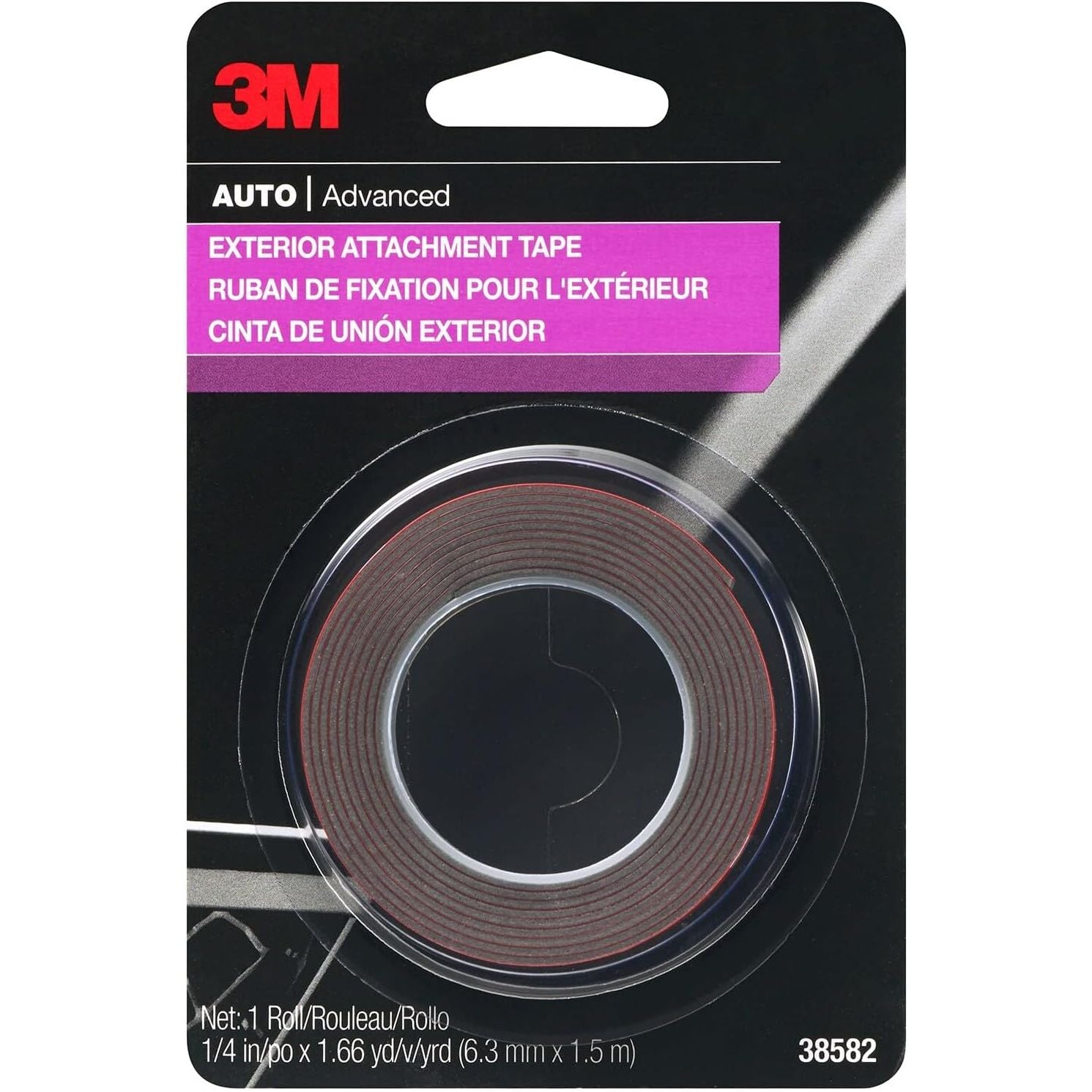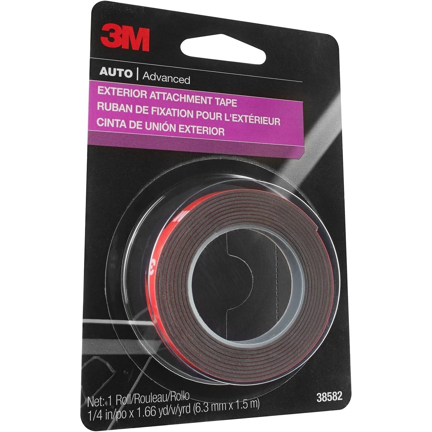 - 3M Auto Exterior Attachment Tape, 1/4 in x 5 ft, Heavy Duty Double-Sided Automotive Tape for Car Trim, Moldings, Emblems, and Badges (38582)