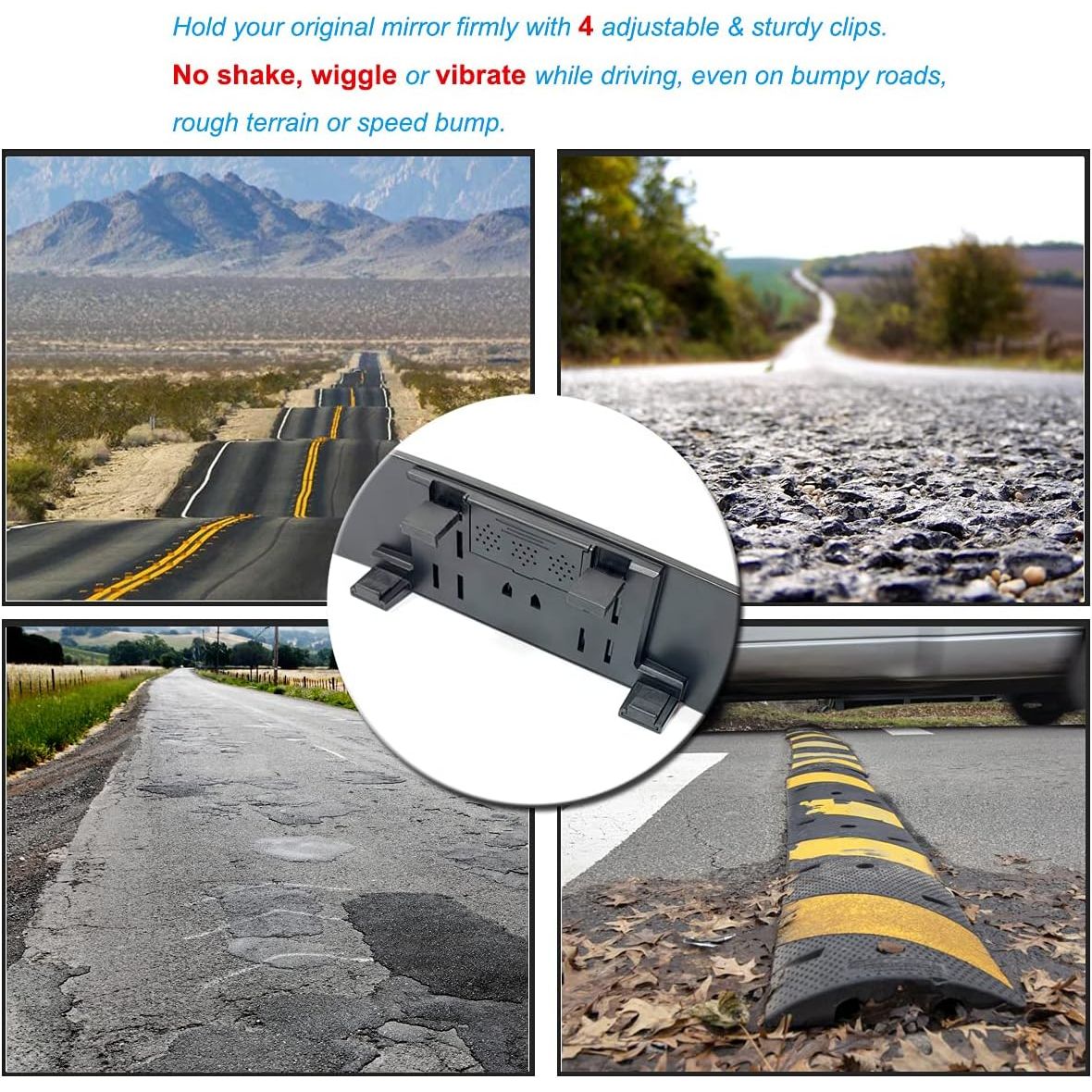 - High Quality – This interior rear view mirror is built with high-quality glass which provides you perfect visibility and clear & real images. It is designed to withstand daily use and environmental conditions. It's secure and doesn't wobble or vibrate, even on bumpy roads.