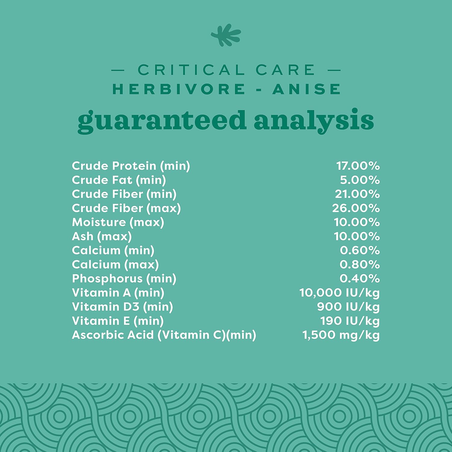 Developed with the assistance of top exotics veterinarians and nutritionists, Critical Care is the industry standard in recovery nutrition for herbivores with poor nutritional status resulting from illness or surgery. Critical Care contains all the essential nutrients of a complete diet, as well as high-fiber timothy hay to support proper gut physiology and digestion.