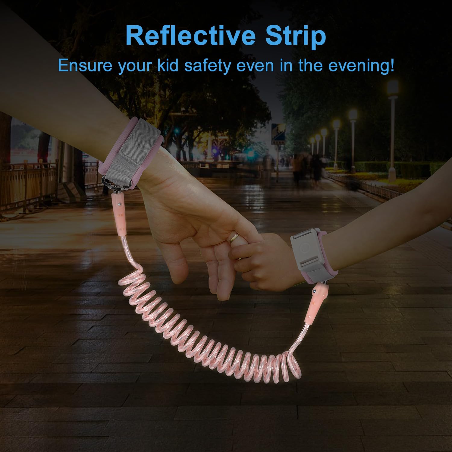 - 【REFLECTIVE STRIP DESIGN】 the child wrist leash features a reflective strip design, making it easy to spot your child even in dark or crowded areas. With this added safety feature, you can feel confident that your child is visible to others around them. Additionally, the reflective strips on the toddler hand leash help to remind drivers to stay alert and cautious in the presence of children, especially at night.