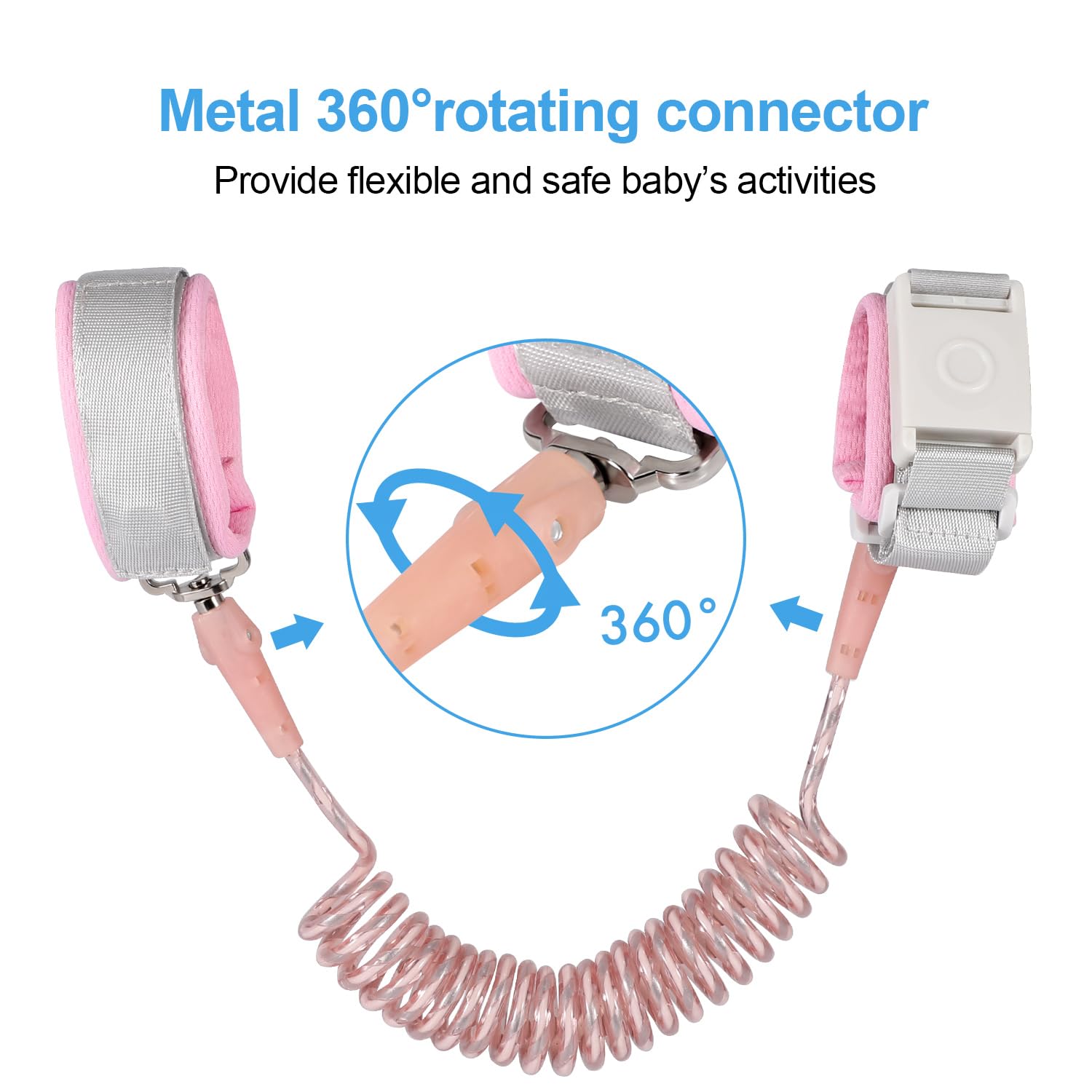 - 【STAINLESS STEEL MATERIAL】 this child leashes for toddlers are made from high-quality, anti-cut stainless steel materials. The surface is covered with durable PU material that resists cuts and snags, providing maximum protection for your child’s safety. The child wrist link is connected by a 360-degree rotating metal connector, which enables your child to move more freely during playtime without twisting or tangling.
