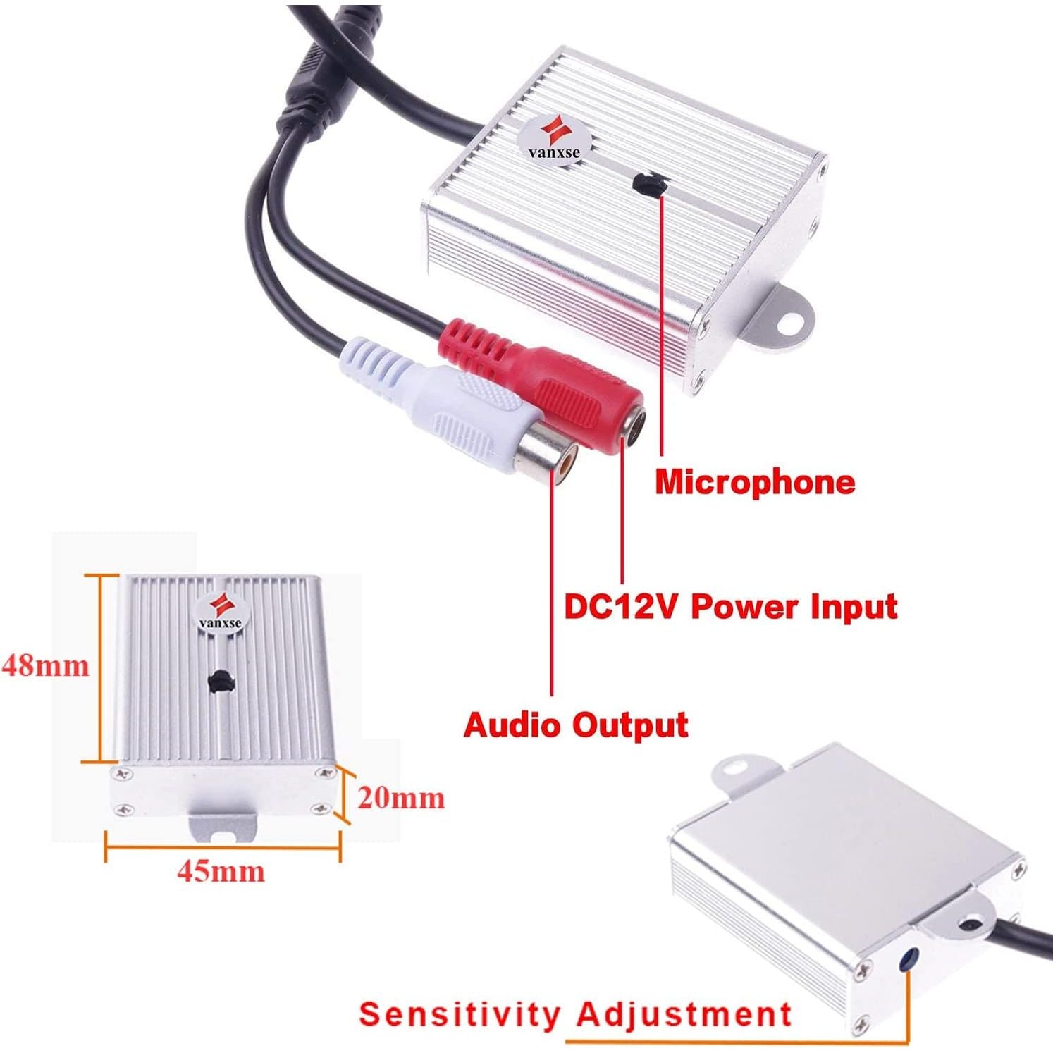 - Vanxse® Mini Microphone High Sensitive Pickup Audio Mic Waterproof Metal Case for CCTV Security Camera DVR System