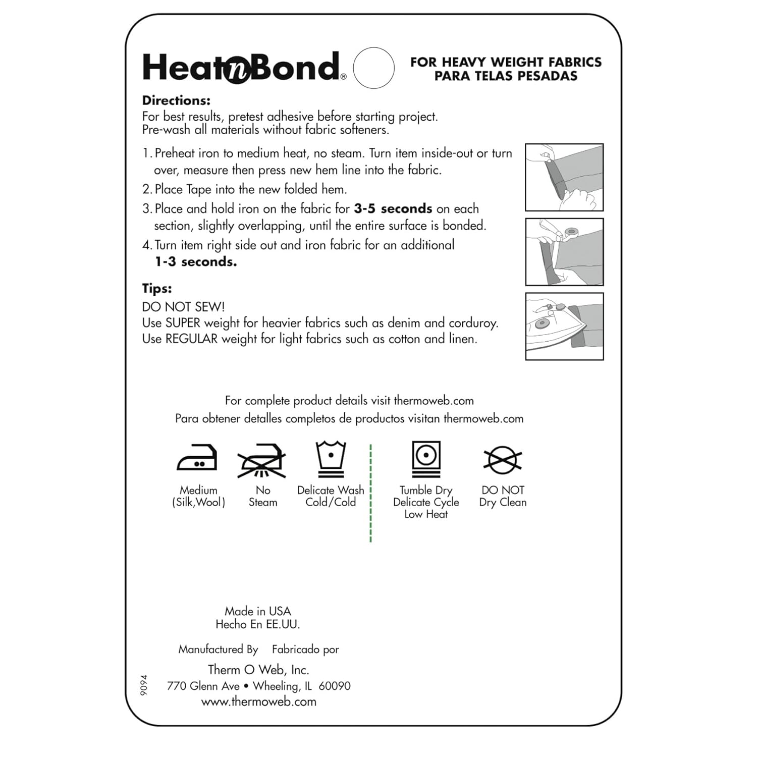 • Iron-on, double-sided adhesive for easily and permanently hemming garments and home décor without any sewing