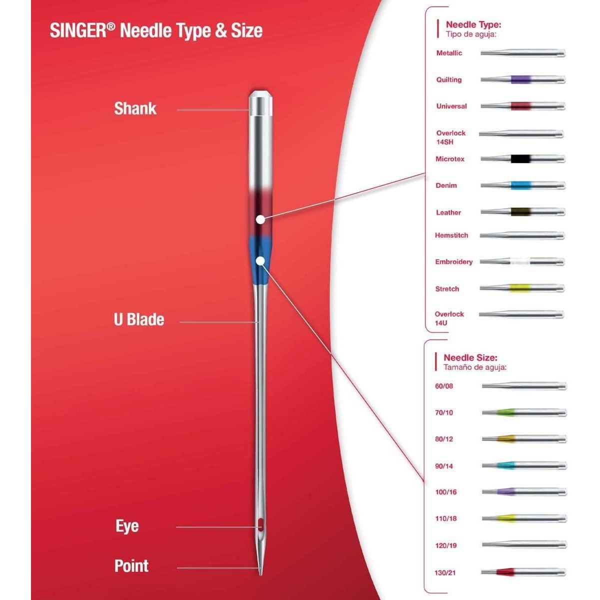 This 4-pack of ball point machine needles is the perfect addition to an existing collection of sewing machine needles. The point is designed to slide between fibers of knit fabrics smoothly, without creating holes or runs in knit fabrics. Needles are color coded and sized 90/14, best for use on medium-weight knit fabrics. These needles can be used on SINGER, Brother, Kenmore and other quality sewing machines