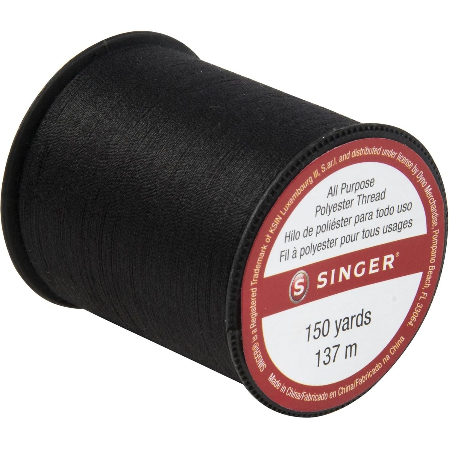 SINGER Black polyester thread blends into fabrics easily and offers a strong hold on heavier fabrics. The thread can be used with hand needles or sewing machine needles. Spool contains 150 yards of 100 percent polyester thread.