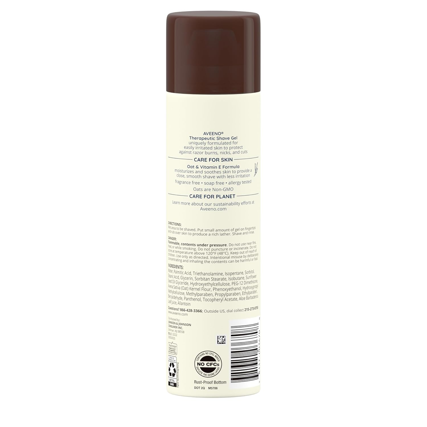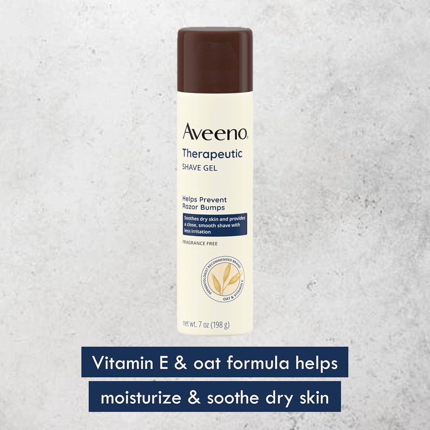 - Aveeno Therapeutic Shave Gel with Oat and Vitamin E to Help Prevent Razor Bumps, Soothes Dry Skin and Provides a Close, Smooth Shave with Less Irritation, Fragrance-Free, 7 oz