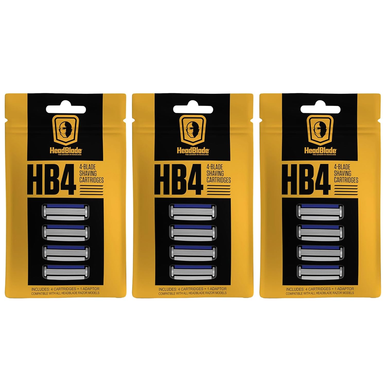 - The HB4 four-bladed cartridge (4 blades per pack) comes standard on the HeadBlade MOTO and ATX models and delivers amazing performance due to its flow-through design and seamless blade construction. (razor not included)